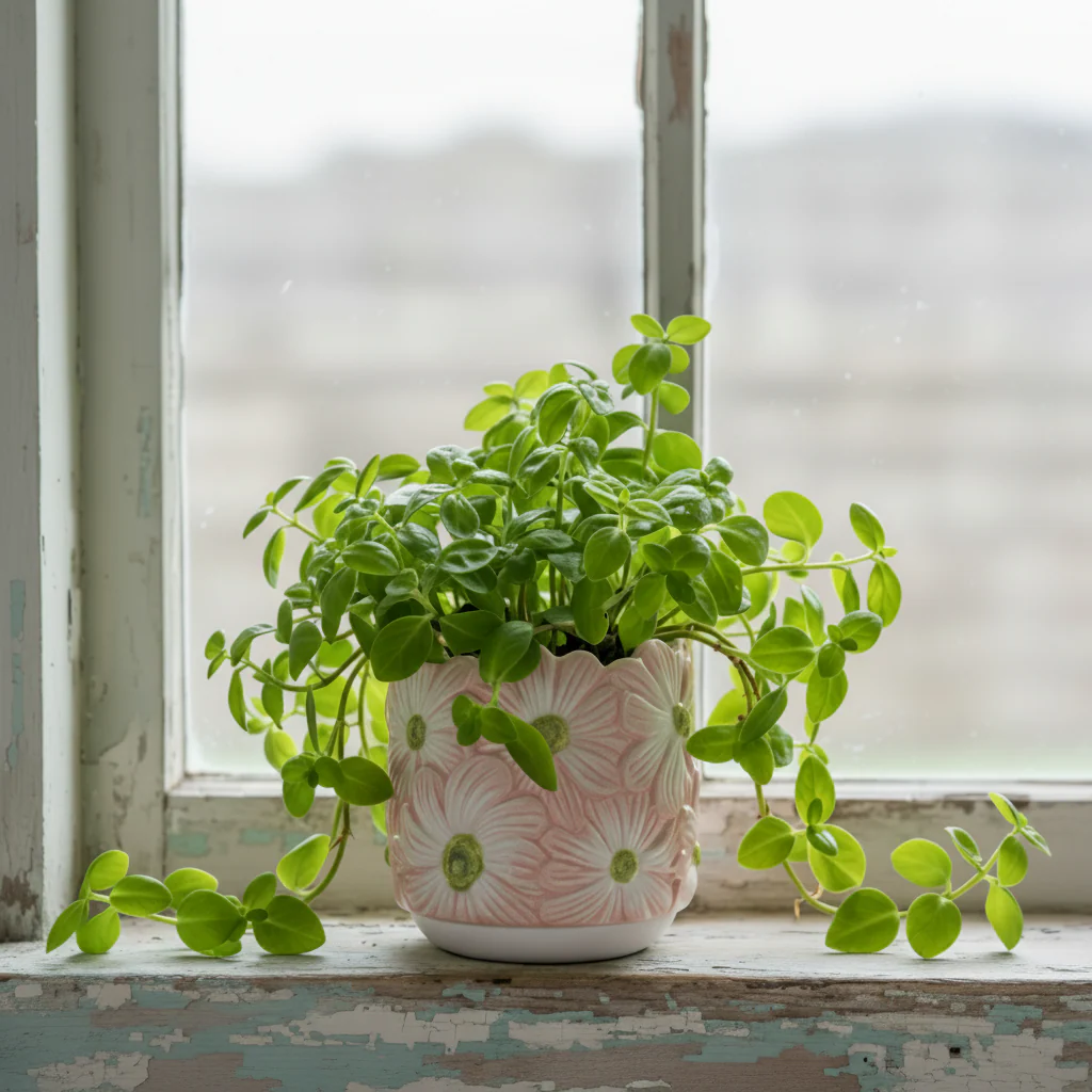 Ge ditt hem eller trädgård en färgklick med Kruka Esther med rosa blommor.