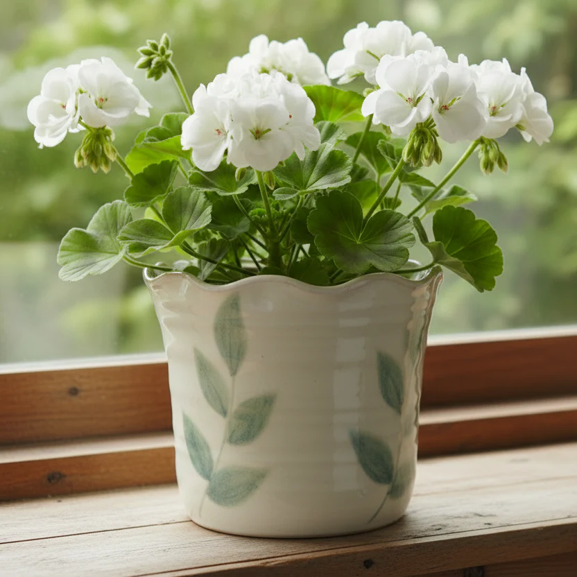 Kruka Viola i Stengods – Elfenbensvit med Gröna Blad