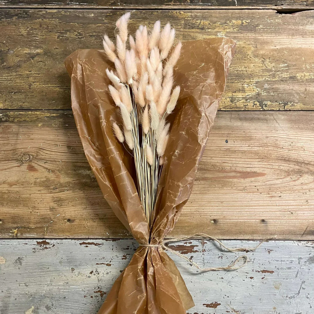 Mjukt torkad lagurus i flera färger som ger en lätt och naturlig känsla till buketter och dekorationer.