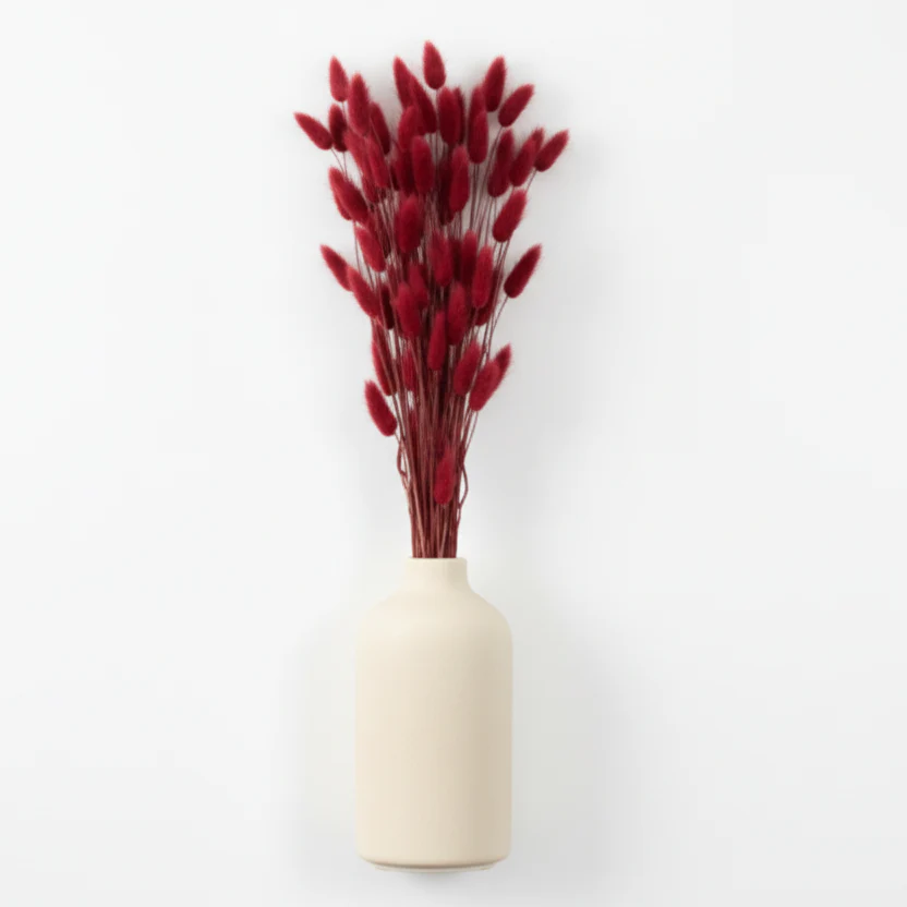 De är tåliga och hållbara, vilket gör dem till ett perfekt komplement till både torkade och konserverade blommor. Rabbit tail i rött passar utmärkt för att skapa färgstarka buketter, bordsdekorationer eller blomsterinstallationer som håller sig vackra länge utan skötsel.