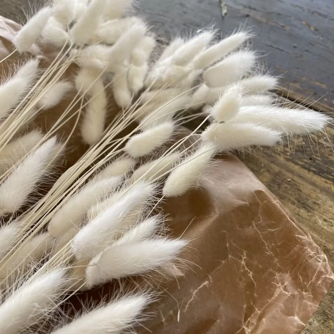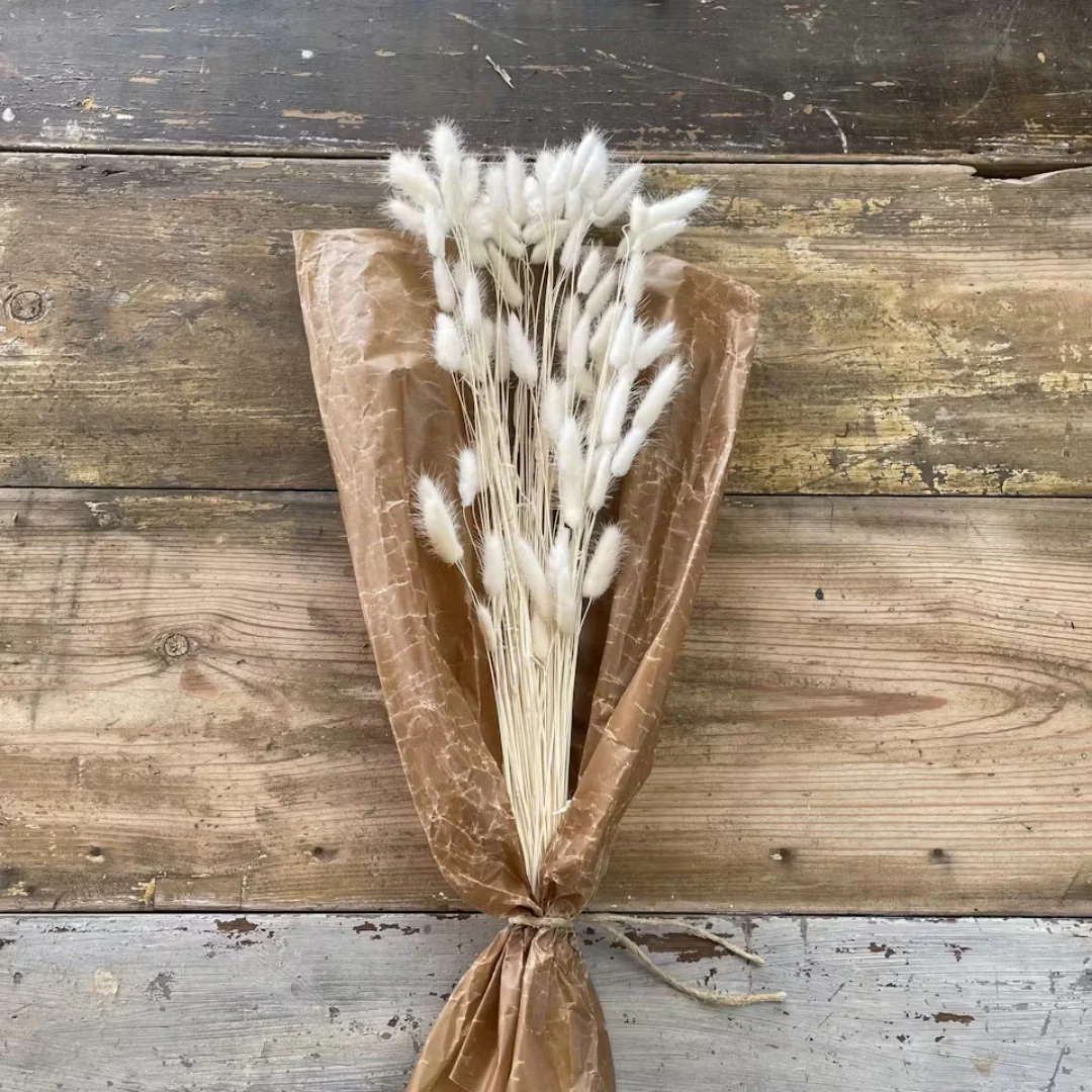 Mjukt torkad lagurus i flera färger som ger en lätt och naturlig känsla till buketter och dekorationer.