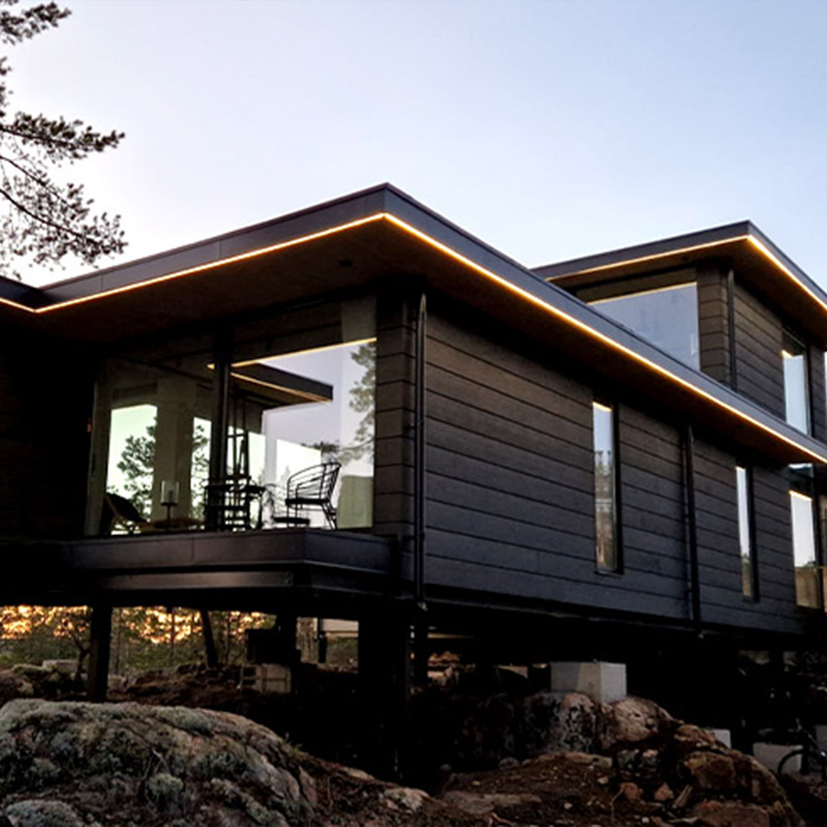 Denna modell har ett skyddande silikon-skal som ger IP-klass 62. Silikonhöljet skyddar mot risken för nyfikna fingrar, smuts och i viss mån vatten. Den fungerar utmärkt utomhus om monterad i aluminiumprofil och inte utsätts för direkt regn. Till exempel under taknock, under överliggare, på staket eller räcke.