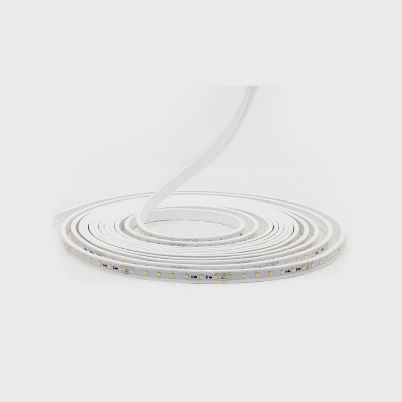 Denna modell har ett skyddande silikon-skal som ger IP-klass 65. Silikonhöljet skyddar mot både smuts och vatten. Levereras enbart på rulle (40 meter). Transformator behövs för inkoppling och clips eller lim rekommenderas för montering. För 40m krävs transformator på 240W, för 30m räcker 150W transformator.