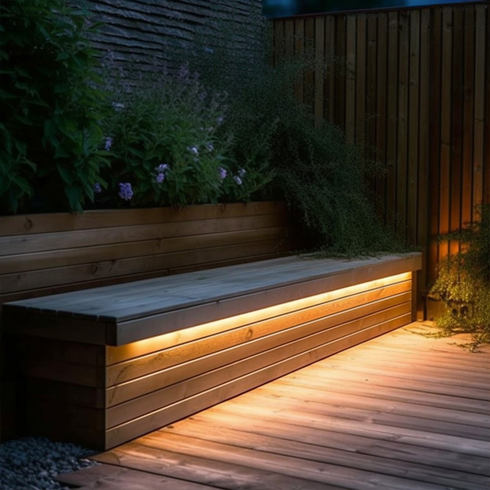 LED-strip 5W/m IP68 med hög färgåtergivning (RA90) passar som dekorationsljus utomhus där det finns risk för direkt exponering av regn, väta och smuts. Exempel på användningsområden är bryggor, pool, bänkar, trädgård, fontäner osv.