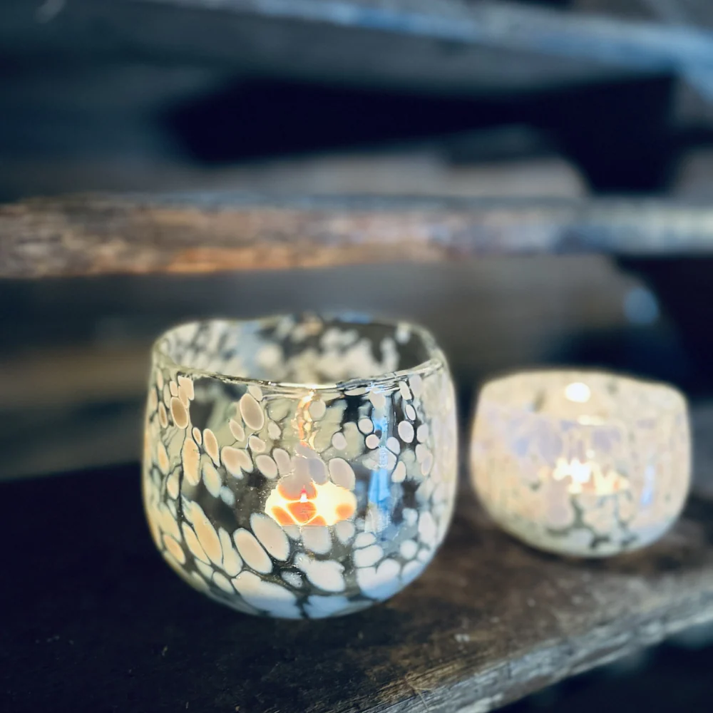 Den lilla lyktan är tillverkad i glas, vilket ger ett vackert sken när ljuset brinner.
