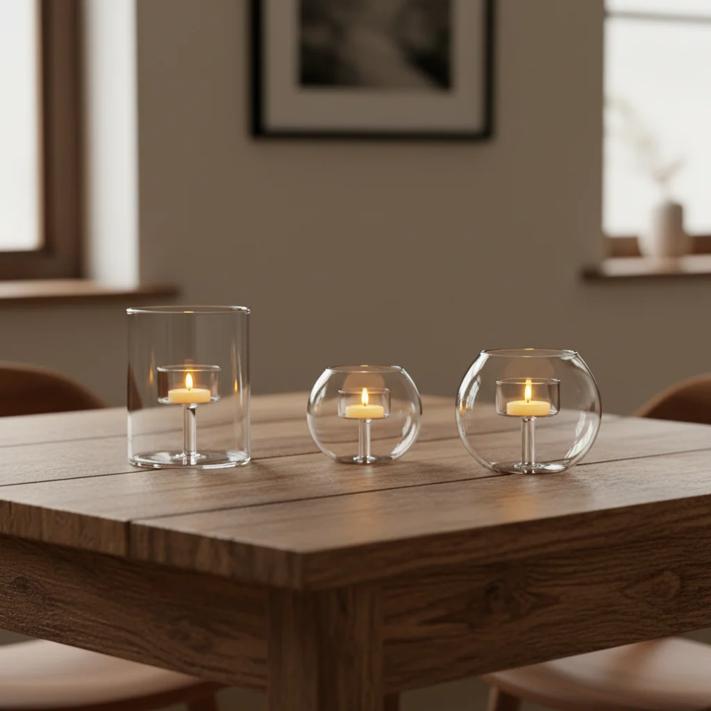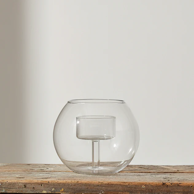 Den klara glasdesignen gör lyktan till en dekorativ detalj som passar i alla rum – på bordet, fönsterbrädan eller som centerpiece vid middagen.