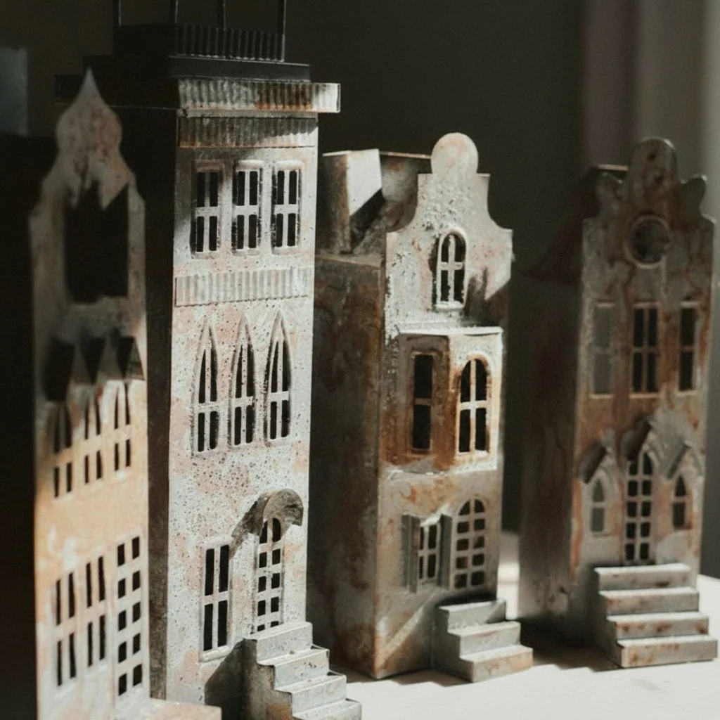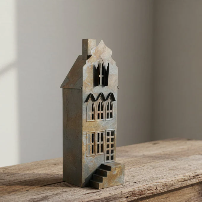 Placera ett värmeljus eller blockljus i lyktan och låt ljusskenet dansa genom fönstren i huset för en magisk atmosfär.
