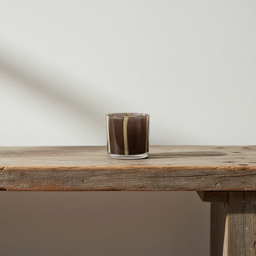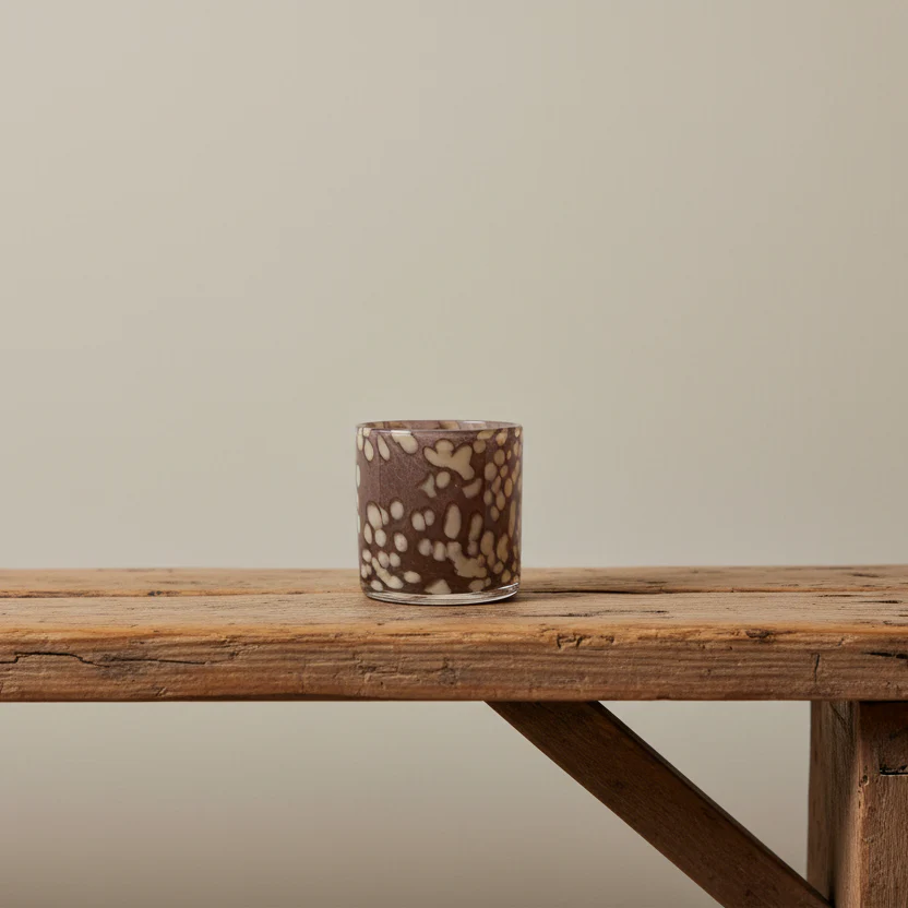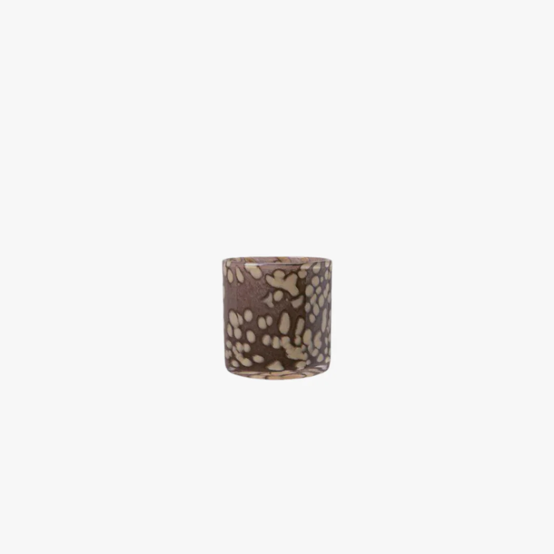 Brun och beige prickig eller en randig ljuslykta skapar ett magiskt sken när du tänder upp den.