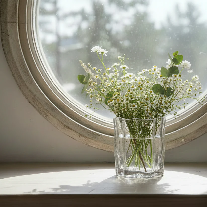 Klarglaset framhäver ljusets lyster och ger ett lätt, luftigt uttryck som lyfter rummet.