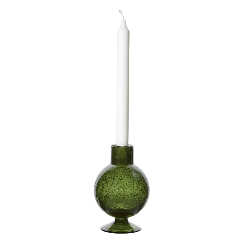 Varje ljusstake är unik tack vare det hantverksmässiga utförandet. Eftersom glaset är munblåst kan små bubblor och ojämnheter förekomma, vilket ger produkten sin personliga charm och karaktär.
