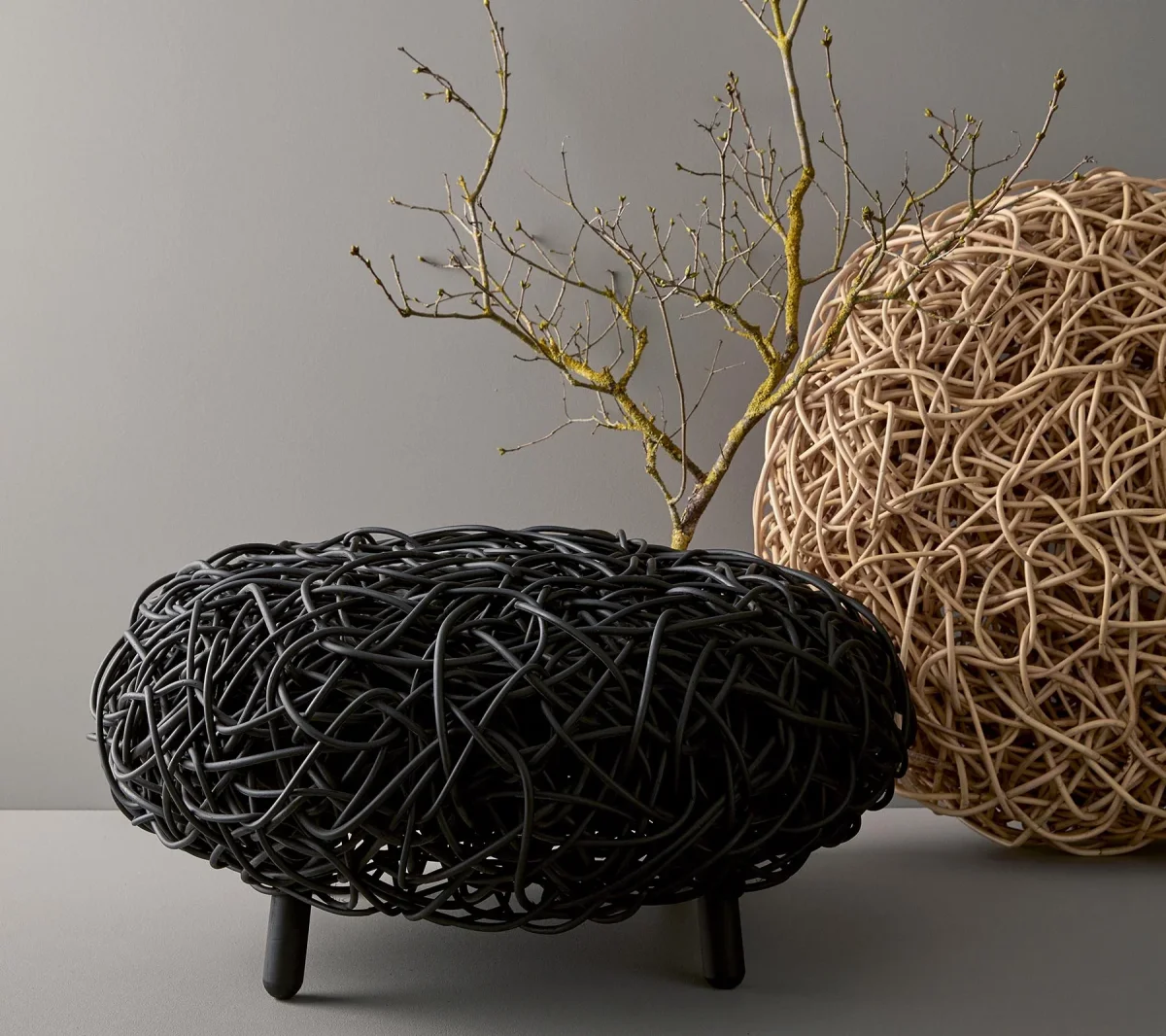 Loop är en modern och urban möbel med en flexibel användning, antingen som en konst, en fotpall, ett soffbord eller bara för dekoration. Den produceras i rotting och kommer i en svart maskulin version eller en mer feminin naturlig version. Möbler som produceras i rotting kan endast användas inomhus.