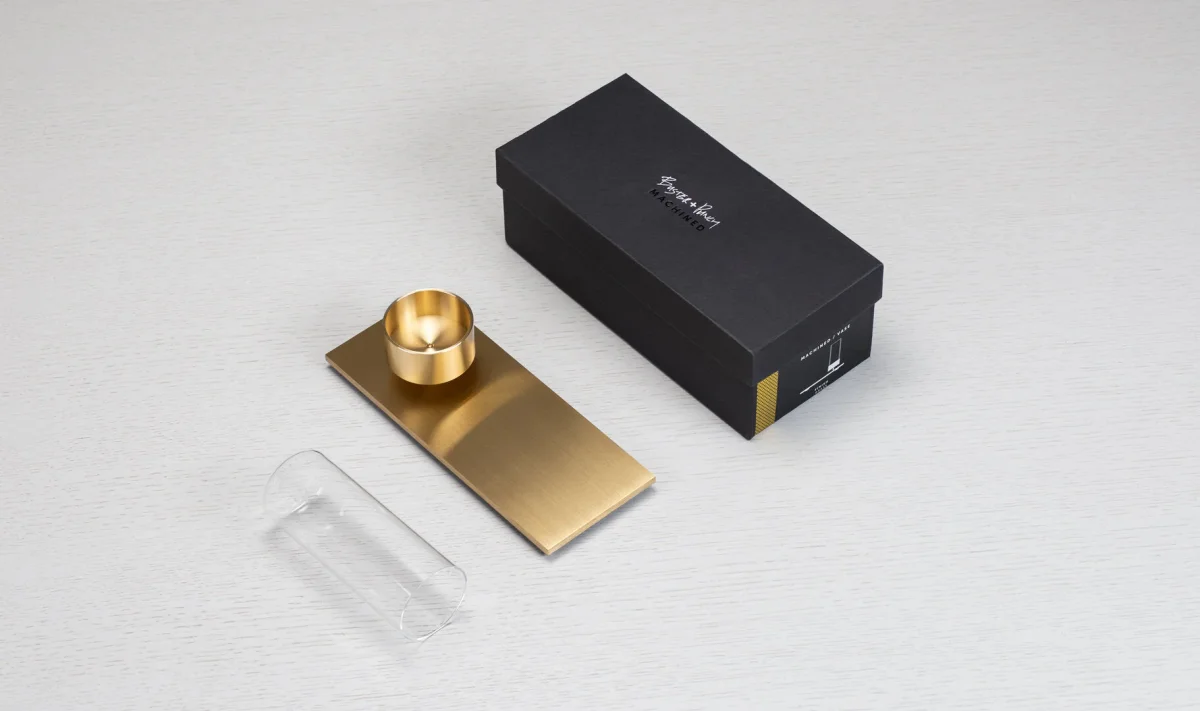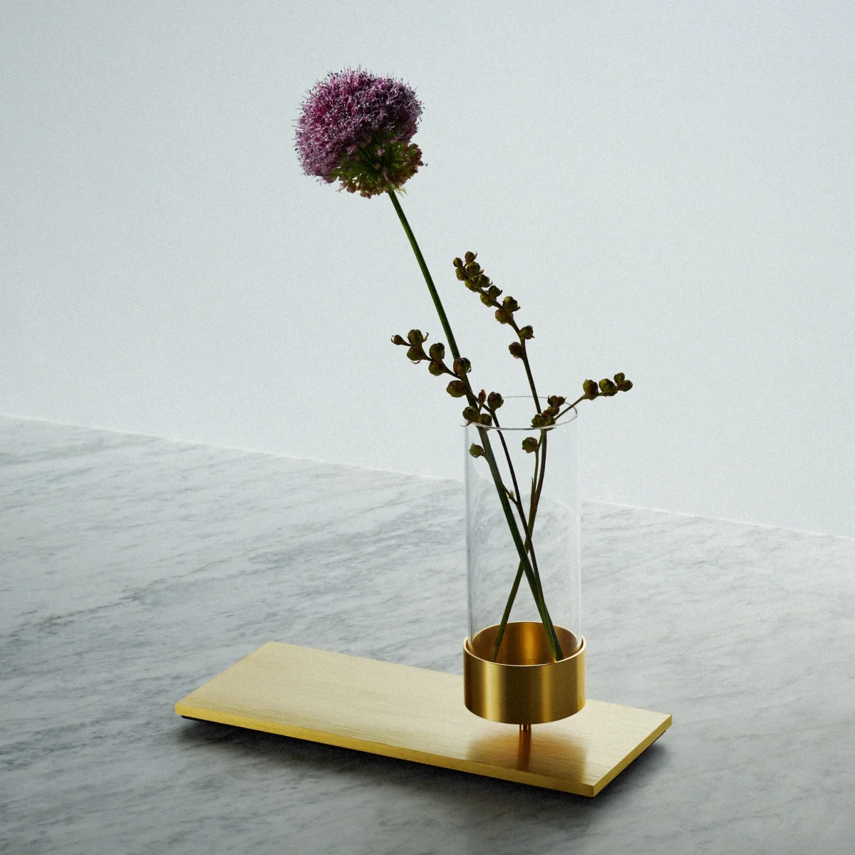 Exklusiv vas från Buster + Punch tillverkad av munblåst glas och massiv mässing. Vasen är vacker i sig själv eller tillsammans med hela Machined-serien från Buster + Punch (se bilden).