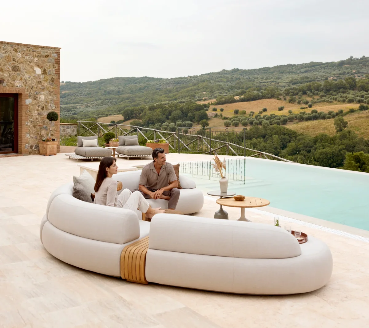 Mellow soffmodul vänster från Cane-line Design tillför en elegant och modern touch till varje utomhuslounge. De mjuka formerna, den låga sitthöjden och den lyxiga stoppningen skapar en mysig och inbjudande sittupplevelse, medan det korta ryggstödet ger designen ett öppet och luftigt uttryck.