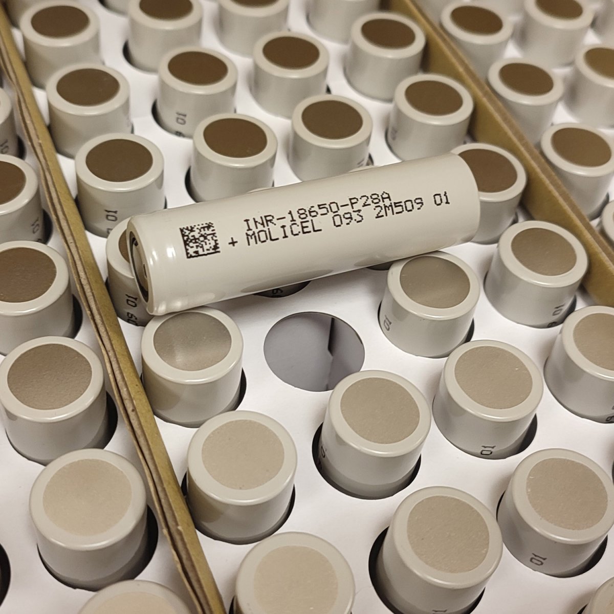 Molicels bästa 18650-cell med hög kapacitet och hög urladdning. Kräver inte temperatursensor för att fungera upp till 35A och enligt deras egna datablad har den över 2.7Ah vid 30A. Dock tycker testaren Moosh 25A är max för kontinuerlig urladdning utan sensor.