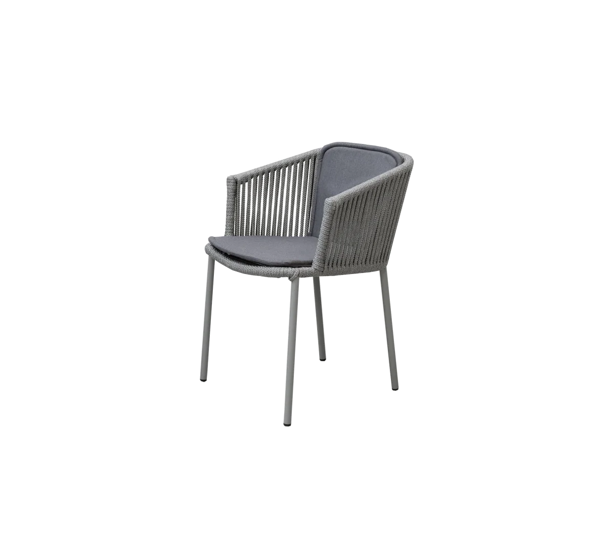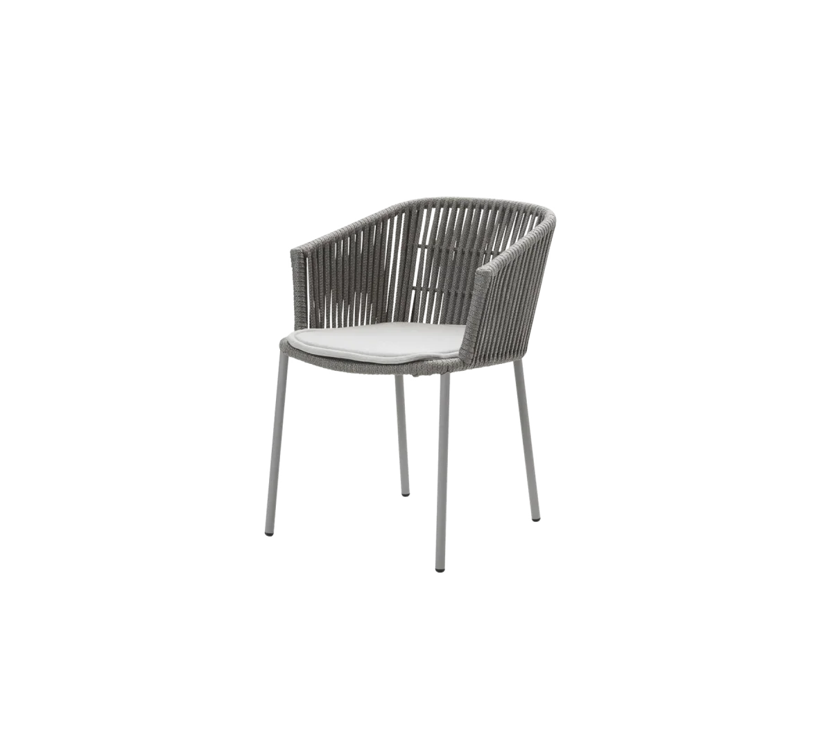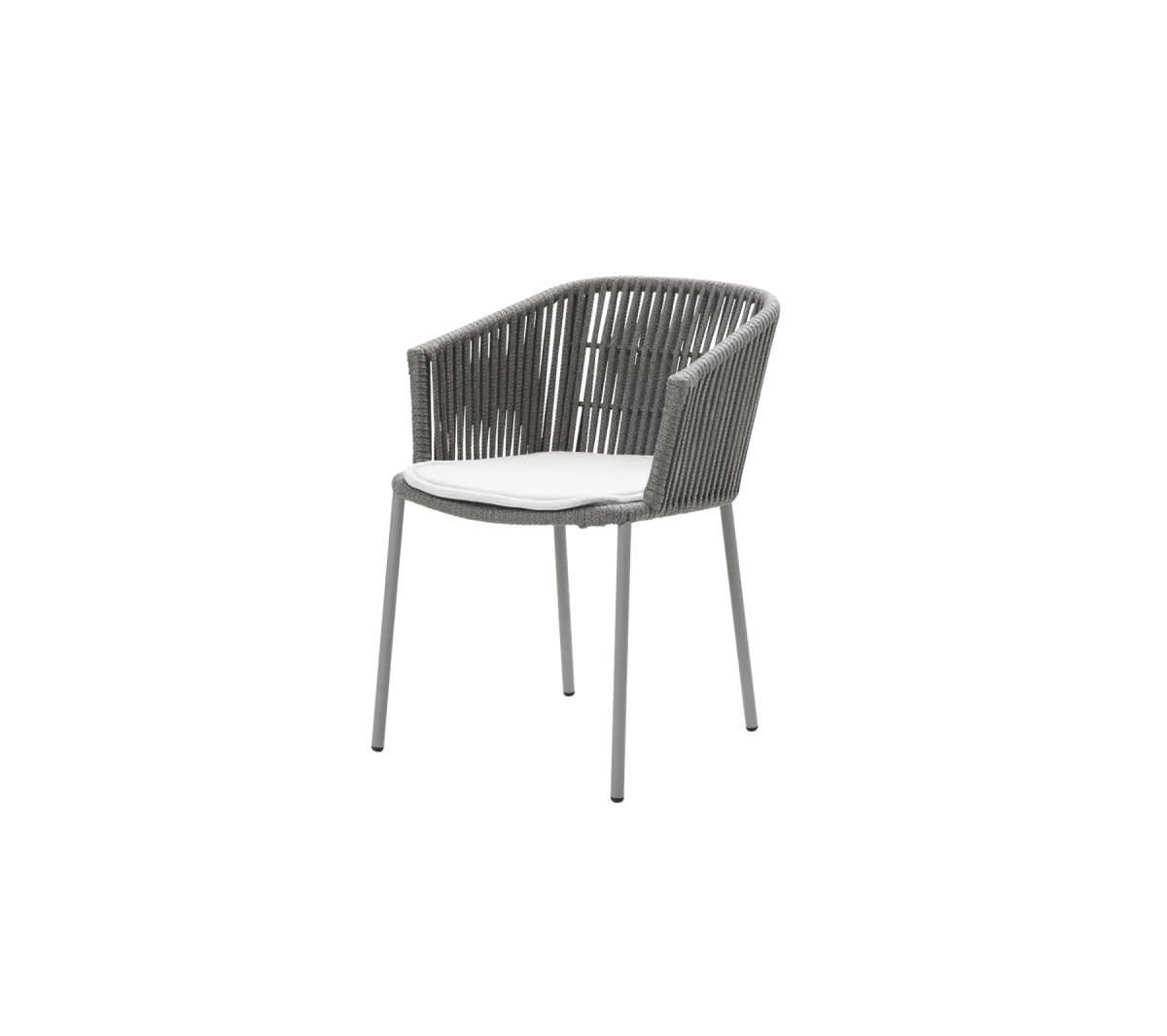 Den eleganta stolen Moments med armstöd har designats av den danska designerduon Foersom & Hiort-Lorenzen MDD. Moments består av en robust stålram och en handflätad sits i mjuka och väderbeständiga Cane-line Soft Rope. Sitsen har ett imponerande och transparent designuttryck som är vackert att titta på från alla vinklar. Stolen Moments med armstöd utstrålar rena nordiska linjer och skandinavisk design när den är som bäst. En elegant stol för det moderna uterummet. Dynorna är tillverkade i mjukt Cane-line-tyg. Stolen Moments är stapelbar av två.