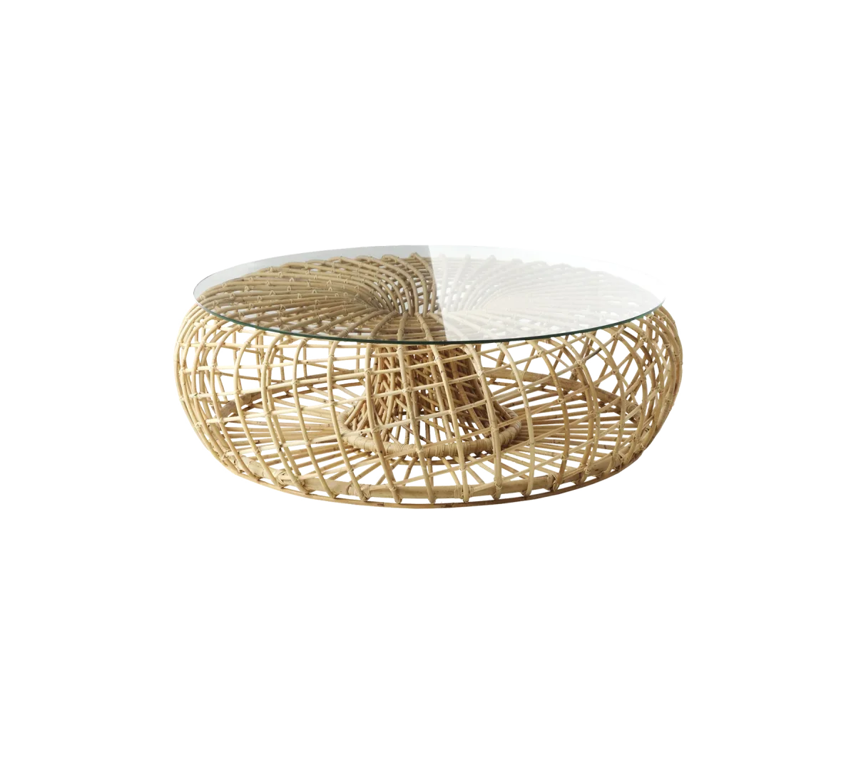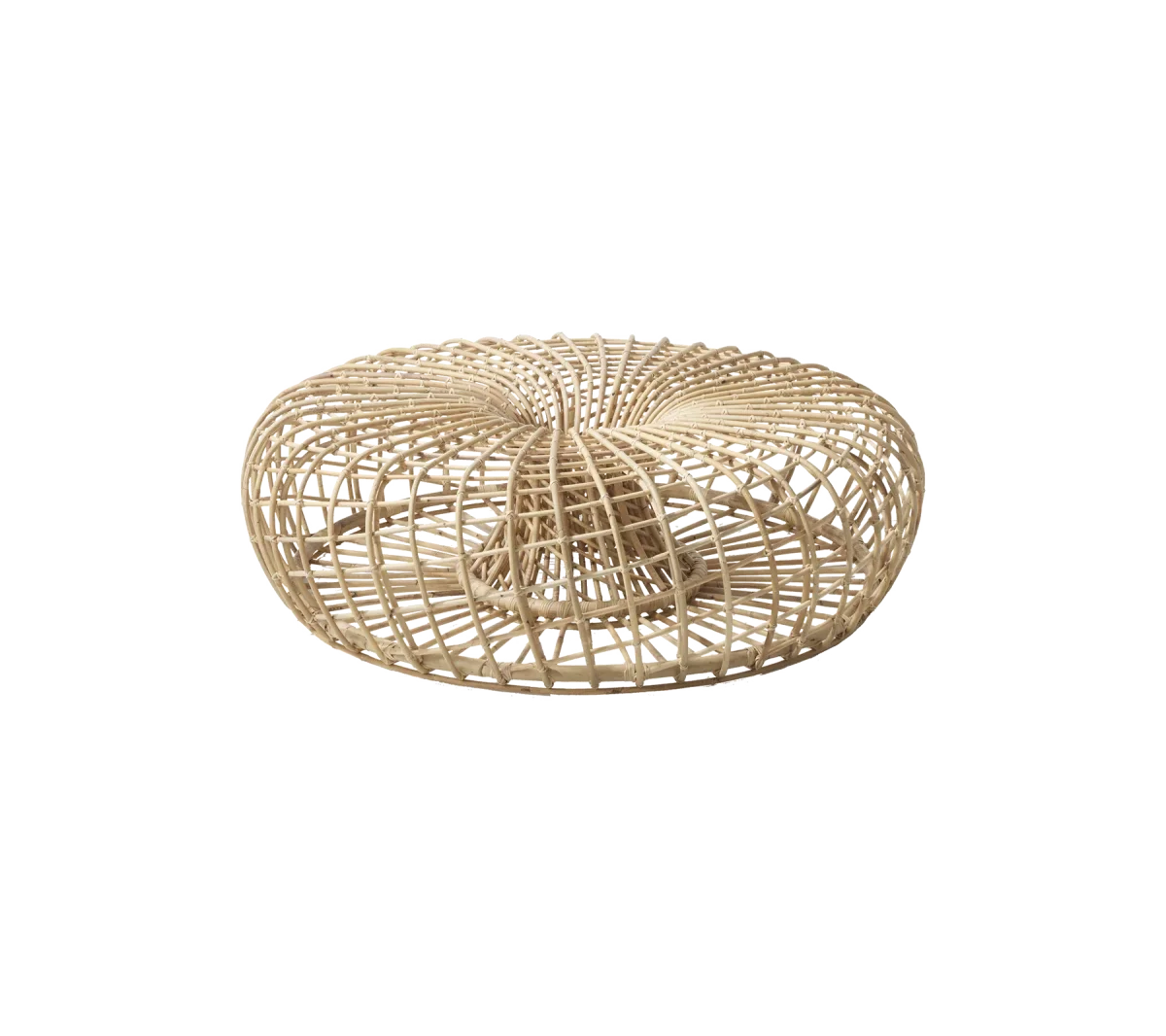 En INDOOR fotpall, ett soffbord eller en skulptur med flera användningsområden, gjord av naturlig rotting. Den häpnadsväckande konstruktionen är lätt men ändå extremt stark. Nest är utformat i Danmark men skapat i Indonesien av erfarna rottingvävare med en lång tradition av detta hantverk.