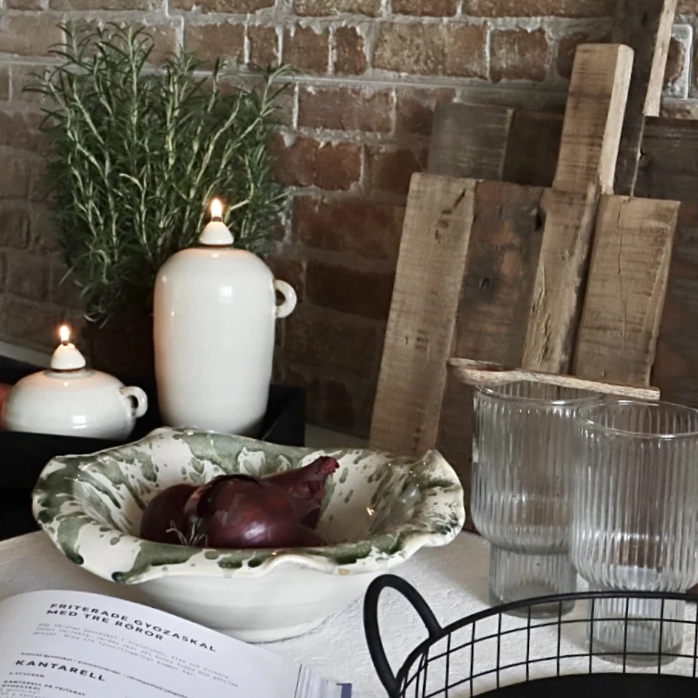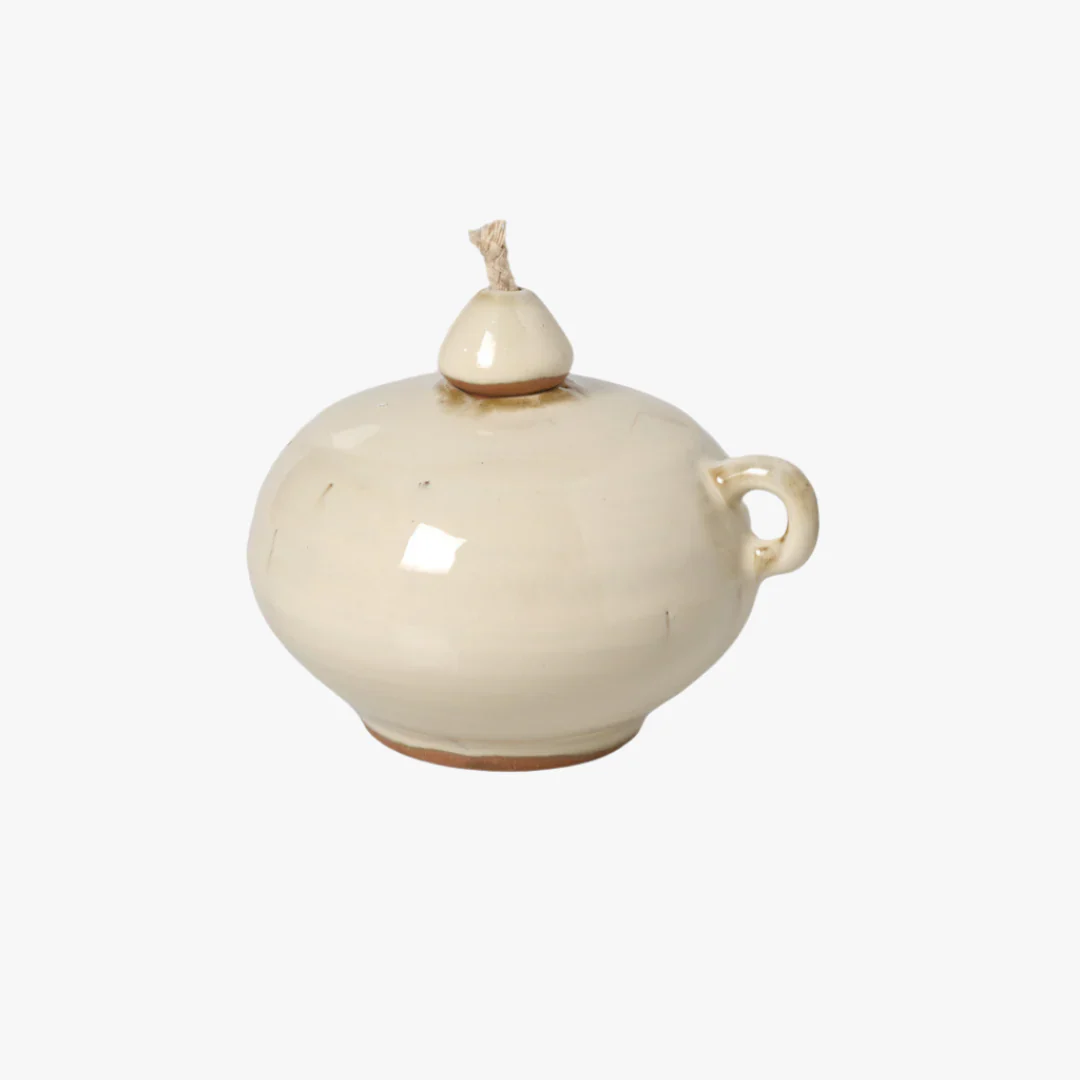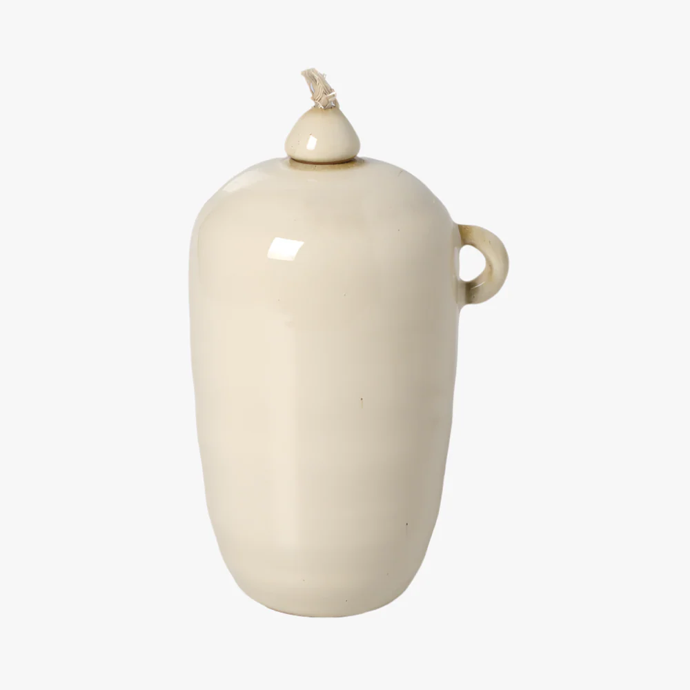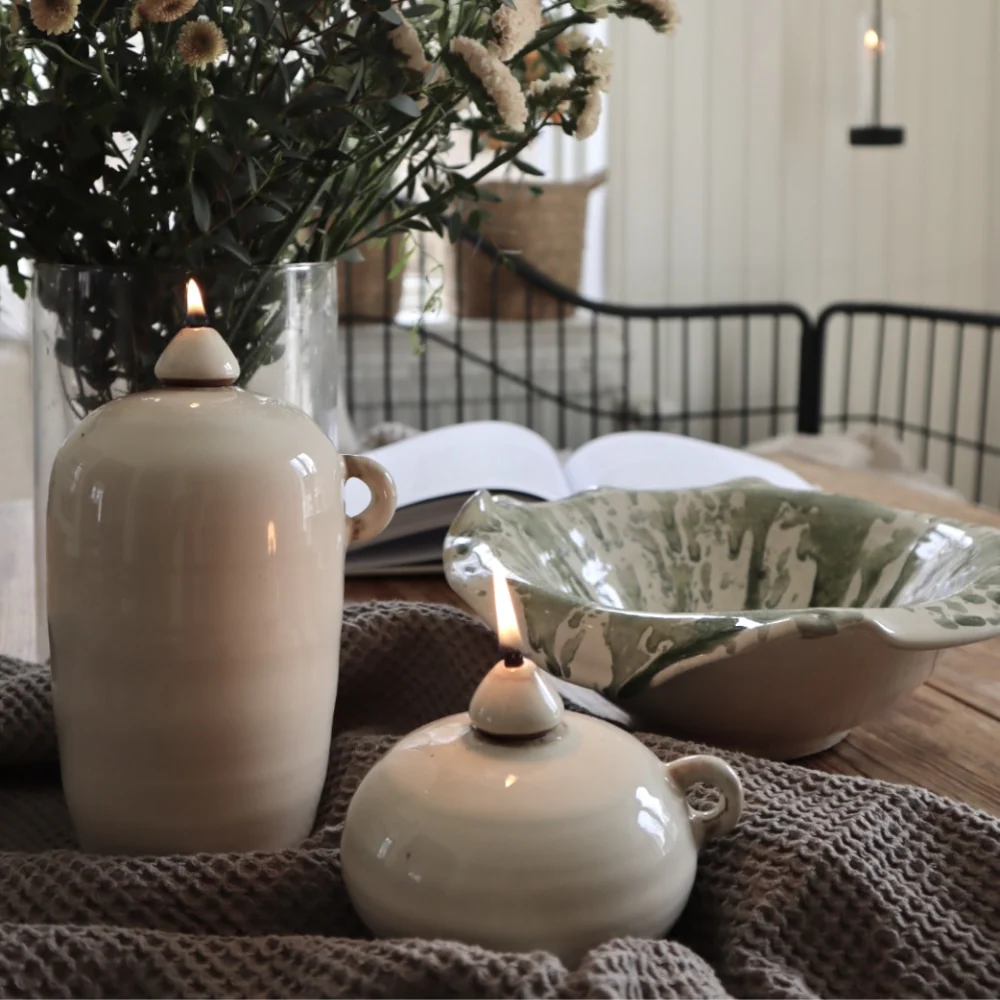 Oljelampan Peggy är elegant och dekorativ ljuskälla som kombinerar traditionellt hantverk modern design. Tillverkad i keramik, har den en tidlös estetik med mjuka linjer och en glaserad yta som utstrålar kvalitet och stil. Lampans keramikskrud ger den en behaglig tyngd och en känsla av äkthet. Peggy finns i tre olika storlekar – liten, medium och stor – vilket gör det enkelt att kombinera flera lampor i olika storlekar för en harmonisk och personlig belysningslösning.