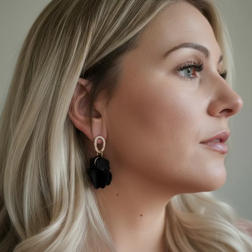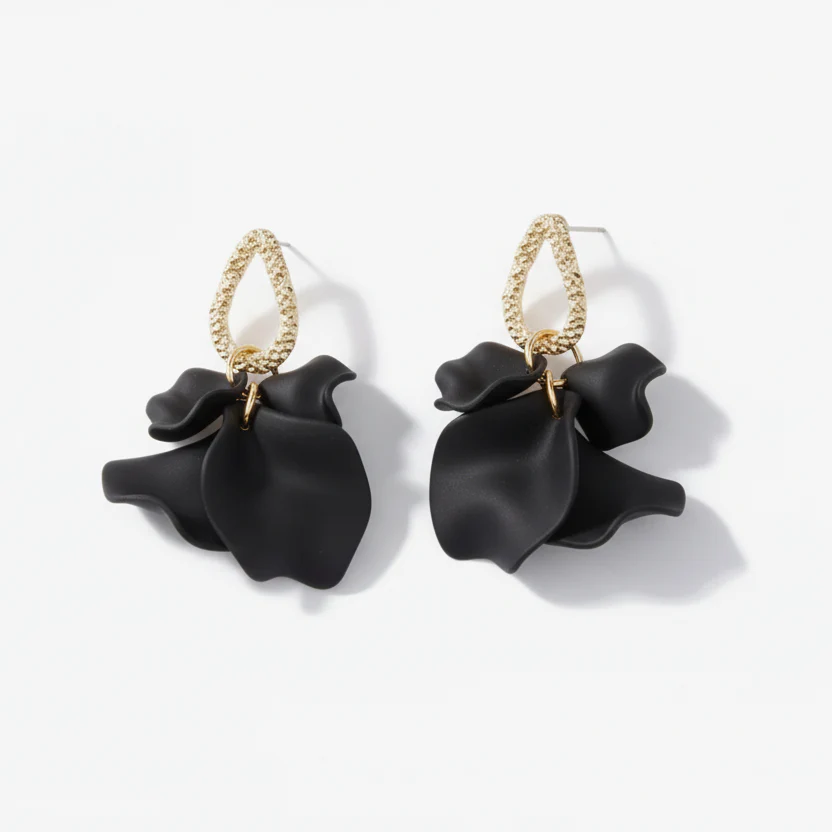 Beställ dina örhängen i svart med gulddetaljer idag och låt dem bli den sista touchen på din outfit!