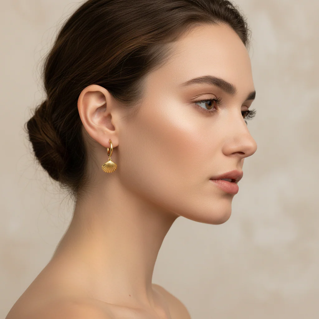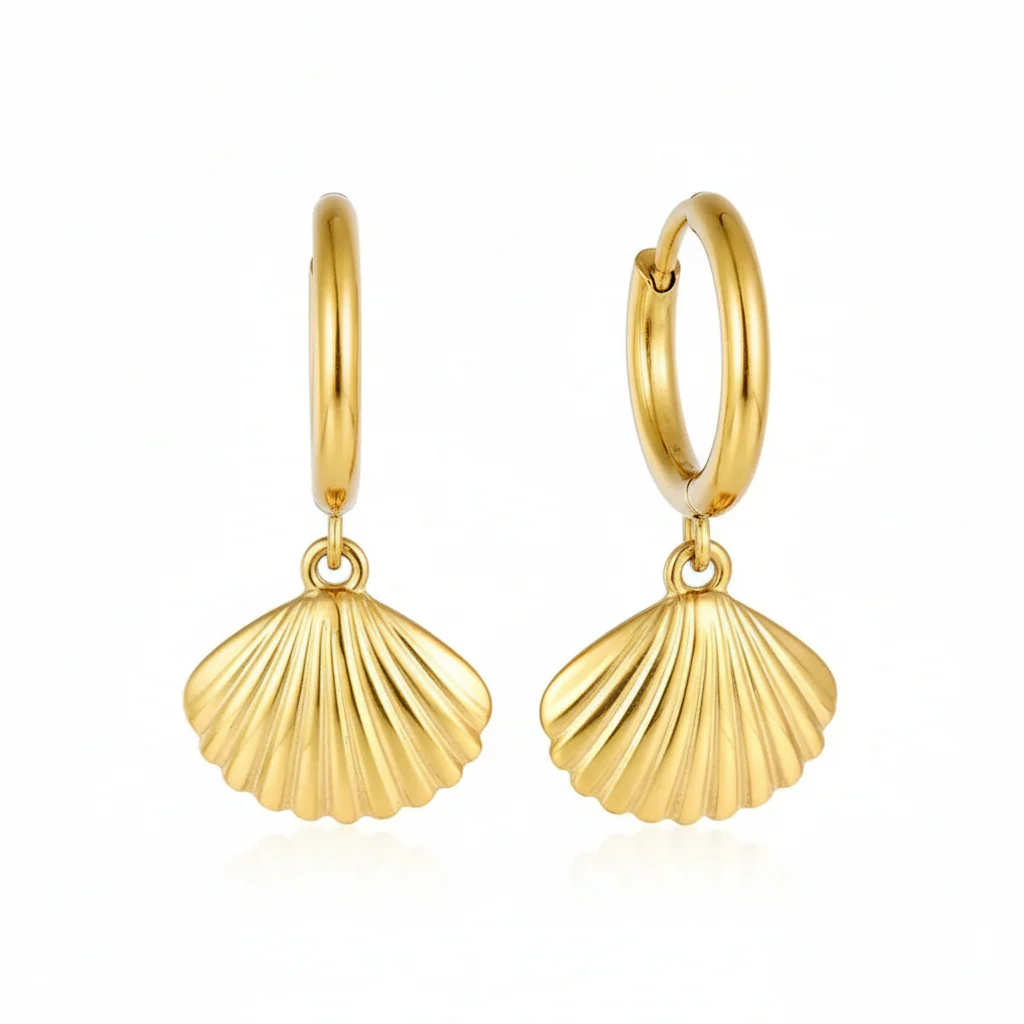 Örhängen Golden Shell i guld – creoler med snäcka