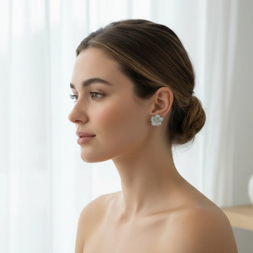 Örhängena pryds av en utsökt formad blomma, vars mjukt välvda kronblad ger ett feminint och graciöst uttryck.
