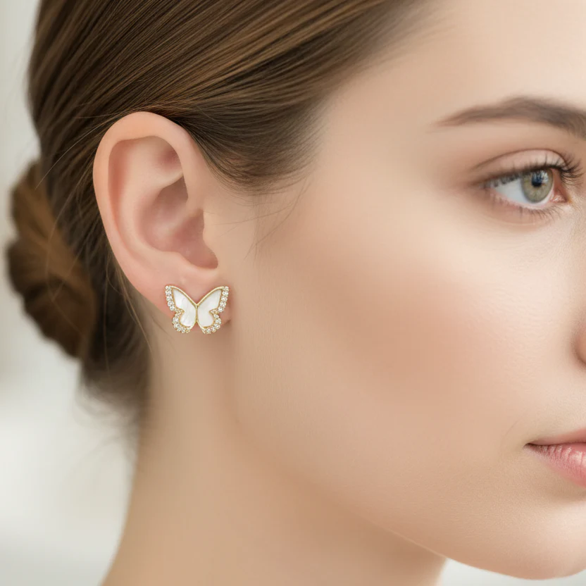 Tillverkade i silverpläterad metall och helt nickelfria, vilket gör dem skonsamma för känsliga öron. Dessa söta fjärilsörhängen är perfekta som en liten detalj som lyfter varje outfit, från vardag till festliga tillfällen.