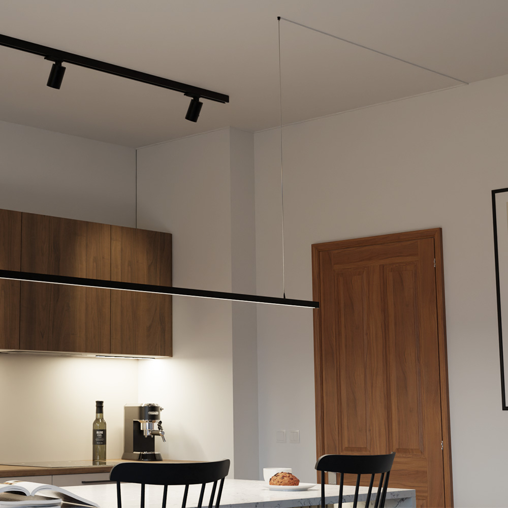 Denna modell av Pendel Elegant är svart och levereras som standard i 2 meter men går att få måttanpassad efter era mått och önskemål. Välj ljusfärg, hur ni önskar att styra belysningen samt alternativ längd. Notera att returrätt gäller inte på vid val av anpassad längd. Pendel Elegant är en tunn, rak LED-armatur (18x23mm) som monteras med medföljande diskreta nedpendlingskit i svart. Vajern är metallfärgad och längden på nedpendlingsvajern är 5m.