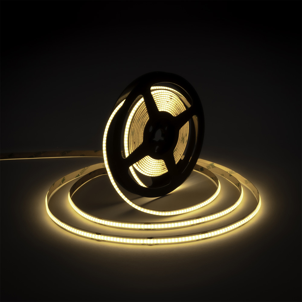 Premium LED-strip COB 8W/m ger ifrån sig ett helt jämnt ljus utan prickar med hög färgåtergivning (RA90). Denna modell passar perfekt som starkare dekorationsbelysning, hyllor, skåp eller dolt släpljus m.m. Köp denna högkvalitativa LED-strip i valfri längd, 1m, 2m, 3m, 4m eller 5m.