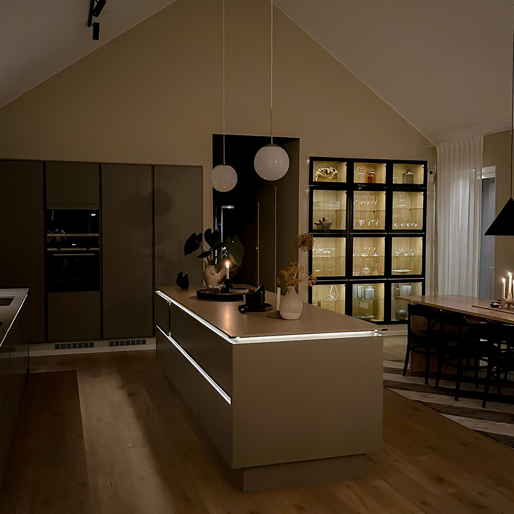 Våra flexibla LED-strips är enkla att montera med sin självhäftande tejp på baksidan. LED-strip drivs med 24V och kräver en transformator för att ansluta till ström. Alla våra LED-strips är dimbara. För att skapa snygga installationer med jämnt ljus montera LED-strip i aluminiumprofil.