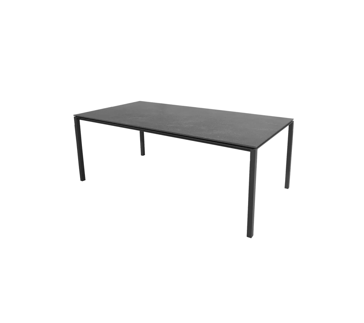 Ramen är tillverkad i högkvalitativ aluminium. Bordsskivor finns i flera varianter. Pure bord är lätt att underhålla, reptåligt och kan enkelt torkas av med hjälp av en fuktig trasa. Bordet är dessutom UV-beständigt, vilket innebär att det kan stå utomhus i alla väder.