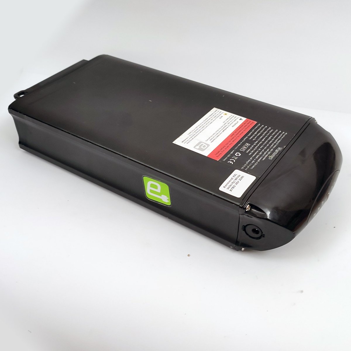36V 20Ah, alltså 150% extra kapacitet jämfört med originalets 8Ah. Strömbrytaren är ej inkopplad.