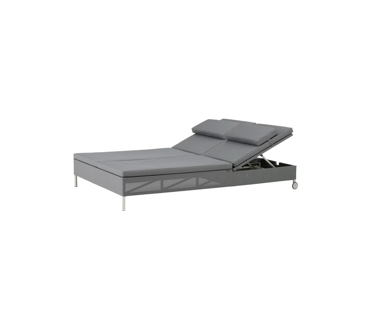 Den klassiska dubbla Rest-solsängen är den perfekta platsen att koppla av och umgås på. Solsängen har en snygg design som inbjuder till att njuta av soliga dagar med hela familjen. Den är tillverkad i slitstarka och väderbeständiga Cane-line-material som endast kräver minimalt underhåll. Dynorna har QuickDry & Airflow-systemet, vilket gör att de torkar snabbare än vanliga dynor. Rest-solsängen har två små hjul som gör den lätt att flytta på. Du kan justera ryggstödet i fyra olika positioner, från helt liggande till helt sittande. Luta dig tillbaka och njut av härliga timmar i solen.