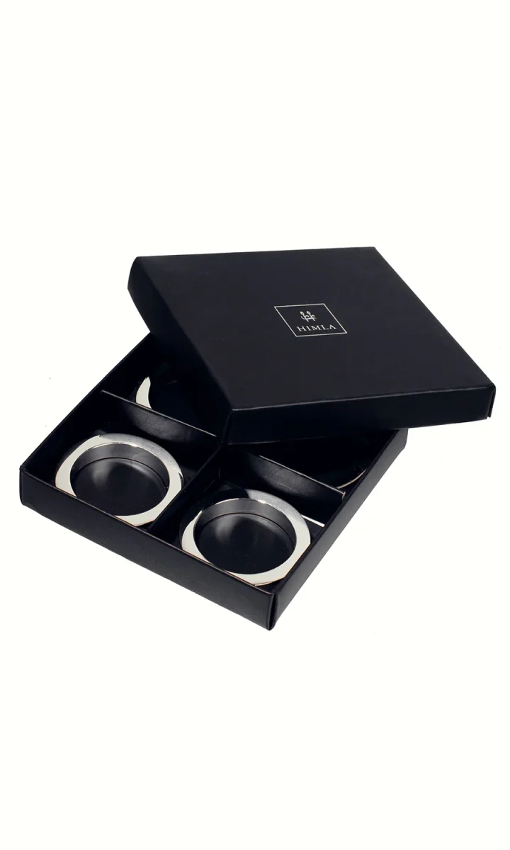 Tvättråd: Metall mörknar naturligt med tiden då ytan reagerar med luft. Behåll den glansiga ytan genom att putsa servettringarna emellanåt. Förvara i en sluten plastpåse.
