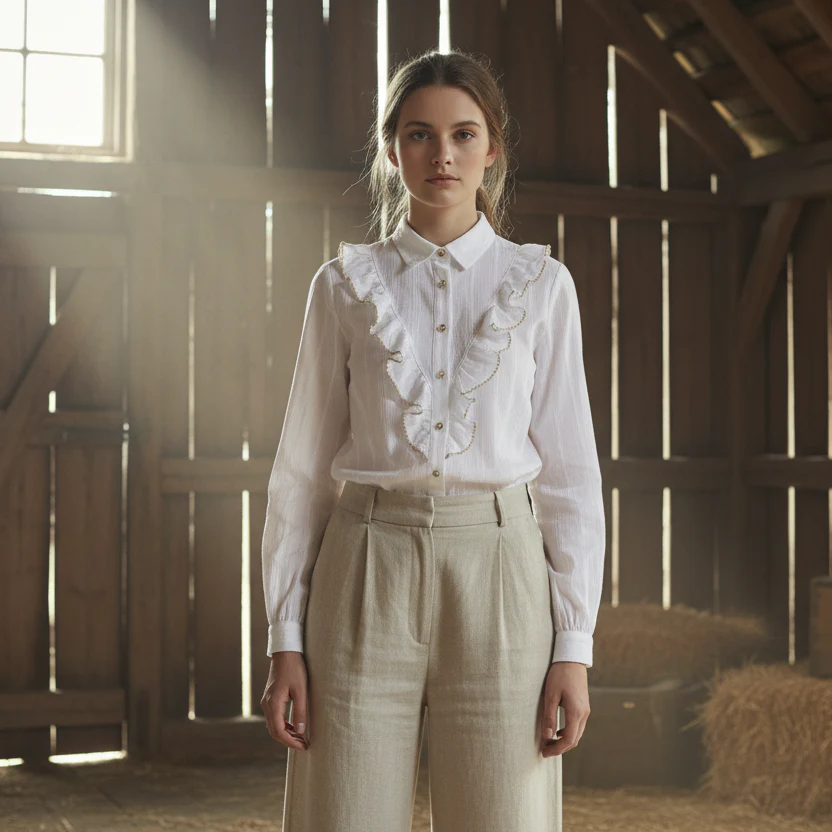 Tillverkad i 100% bomull är blusen både mjuk och bekväm – perfekt för både vardag och fest. Med sin tidlösa design blir den snabbt en favorit i din garderob.