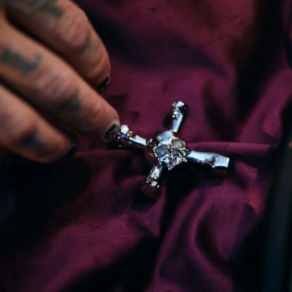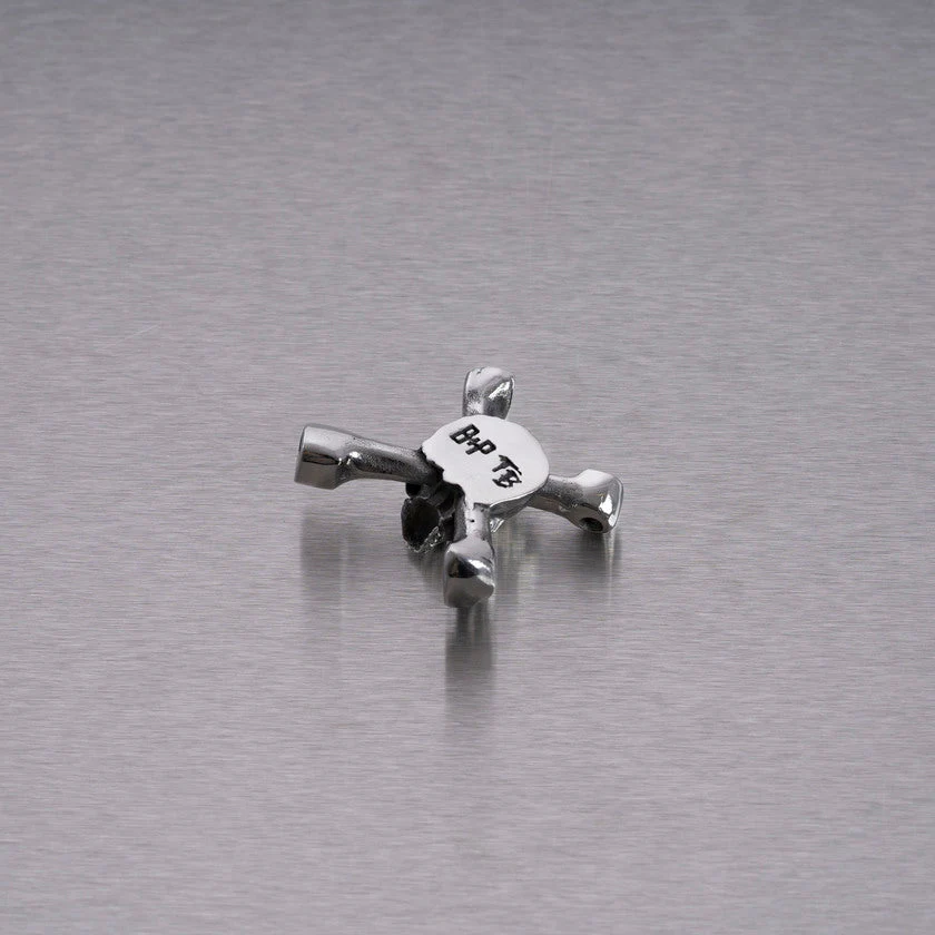 Med Buster + Punchs Skull trumnyckel/halsband, designat av Travis Barker, får du ett coolt halsband med ett hänge i form av en dödskalle som samtidigt är en trumnyckel – ett litet verktyg som används för att dra åt eller lossa stämskruvarna på trummor.