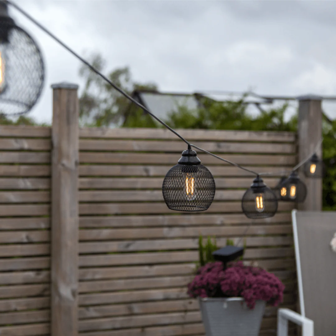 Solcellsdekorationen Sunlight-8 är en slinga med att dekorationer av metallnät och som lyser upp med filament LED.