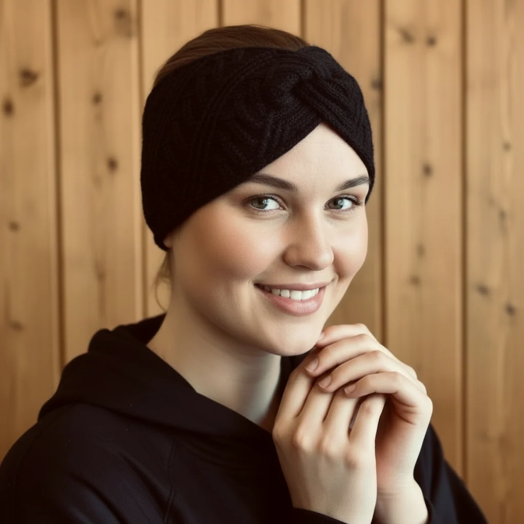 Detta vackra, stickade pannband är både ett stilrent och praktiskt tillskott till din vintergarderob. Med sin eleganta vridning framtill ger pannbandet en unik och trendig look, samtidigt som det håller dig varm under kyliga dagar.
