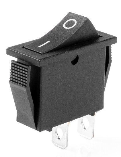 Vippströmbrytare (Av/På knapp) av typen KCD3. Den har bara 2 lägen av och på. Denna använder vi mycket själva då den klarar 250W (24V/10A samt 36V/7A) utan problem. Den har ingen DC rating men alla mindre brytare vi prövat på DC 250W har smällt efter ett tag och fastnat i ett läge så vill du har en strömbrytare på din elcykel kan du använda denna. Kan troligen klara även 350W men troligen inte så mycket mer än så. Vi gillar riktiga strömbrytare som faktiskt bryter strömmen och inte relä-brytare som bara pausar strömmen och ofta drar en del ström i viloläge.