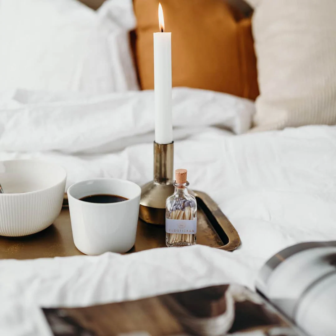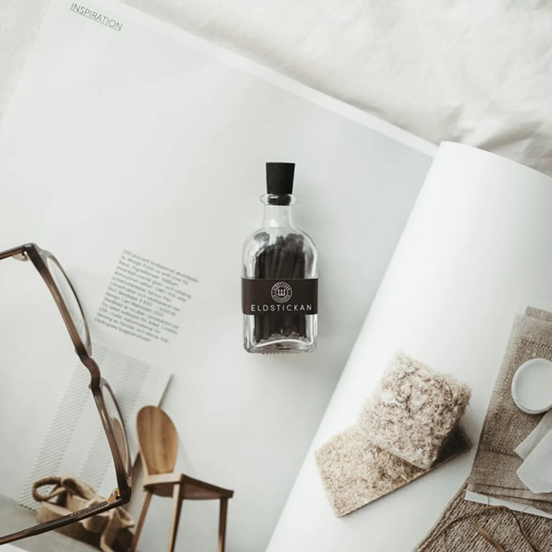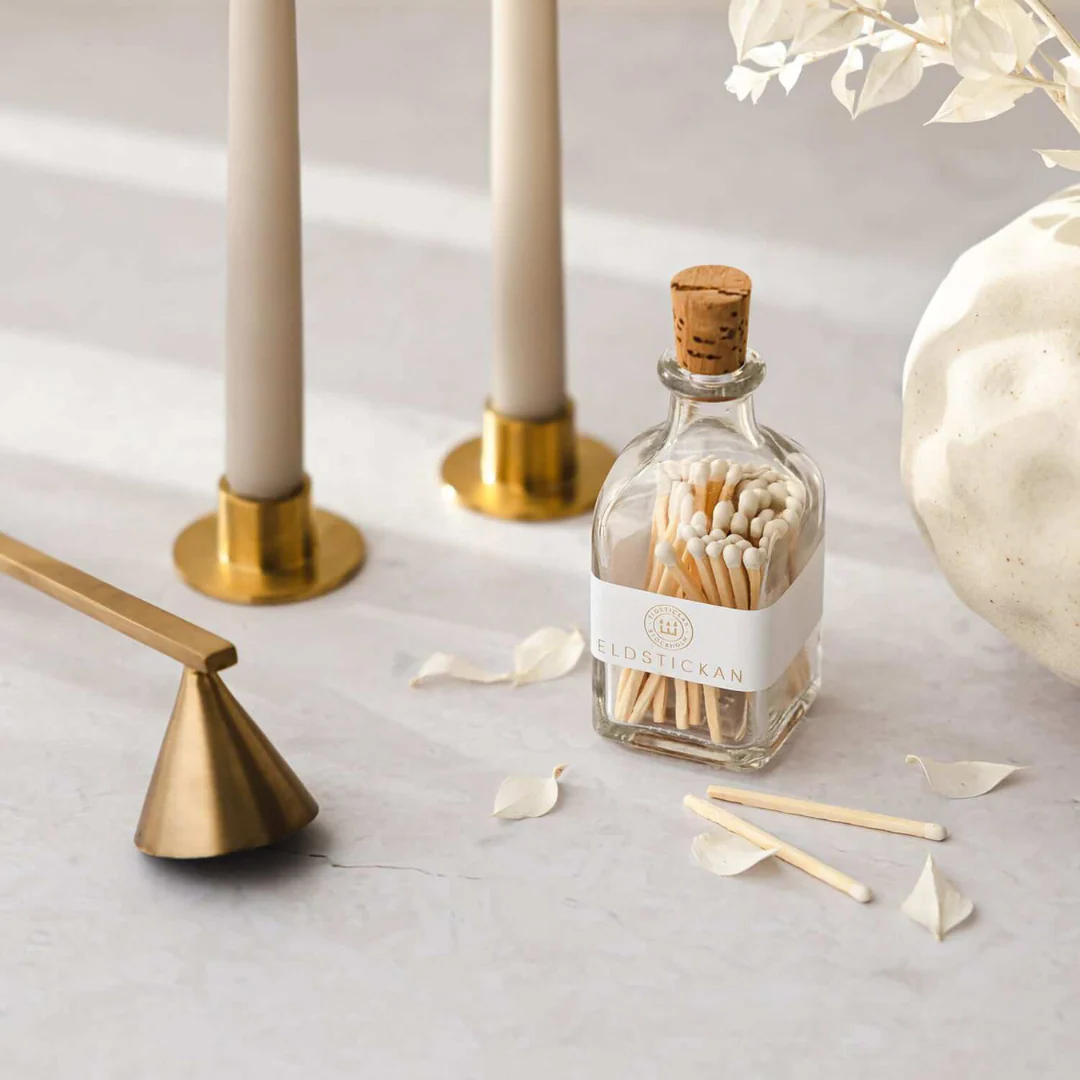 Tändstickor i en lyxig glasflaska.