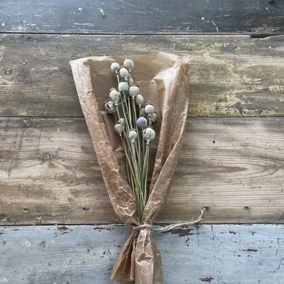 Torkad vallmo är både tålig och lätt att styla, vilket gör den idealisk för långvariga arrangemang som håller sig fina över tid. Använd dem som en stilfull detalj i vaser, tillsammans med andra torkade blommor eller som en enkel men effektfull dekoration på egen hand.