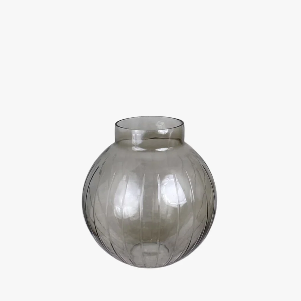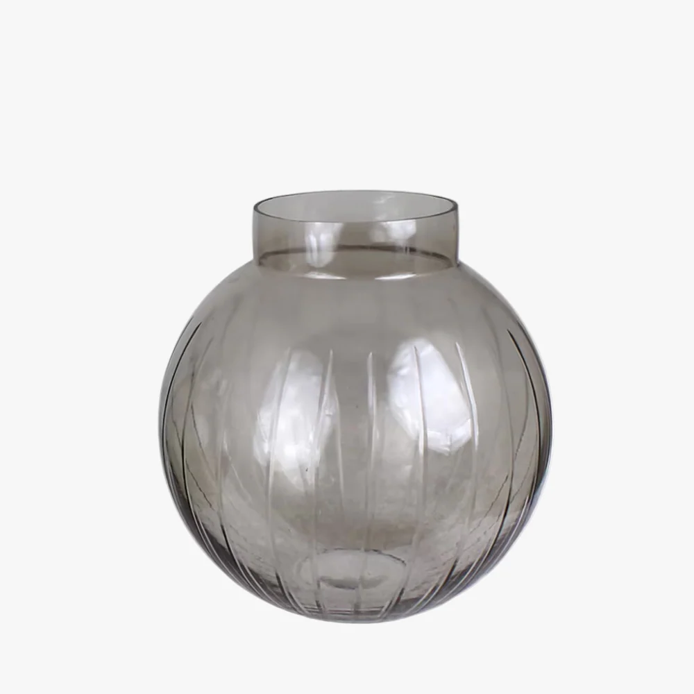 En så fin vas i grått glas med frästa ränder i glaset för en vacker effekt.