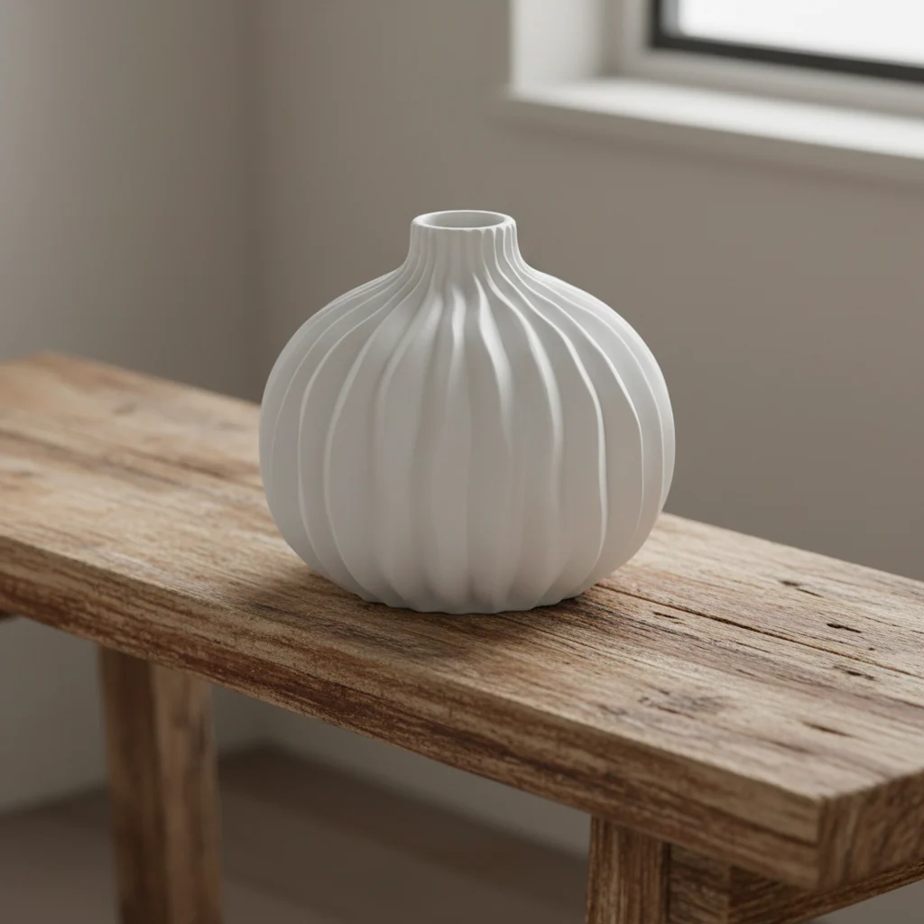 Vas Fårö är en stilren och elegant vas som passar perfekt för små buketter, torkade blommor eller som en dekorativ detalj på egen hand. Den väldesignade formen med rund siluett och vågig struktur ger ett mjukt och harmoniskt intryck i rummet.