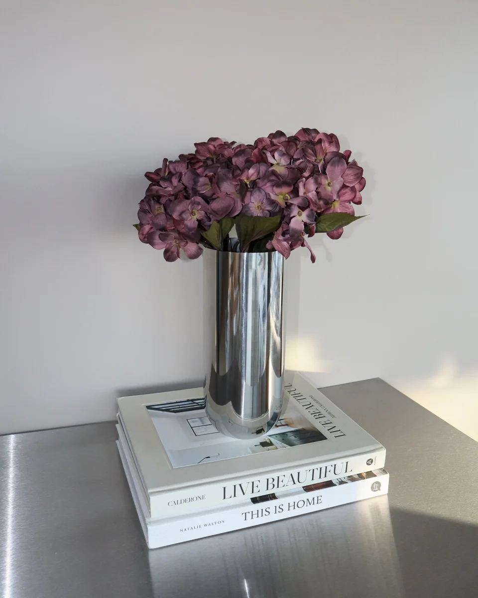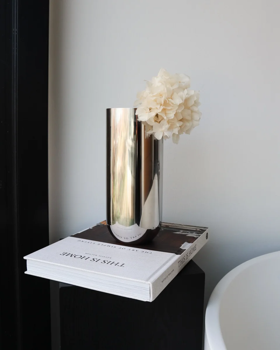 Enkel, elegant och modern – denna höga vas i rostfritt stål från NICHBA tillför ett stilrent uttryck till varje inredning. Med sin smala design och blanka yta fungerar den vackert med både färska och torkade blommor, men är också dekorativ i sig själv.