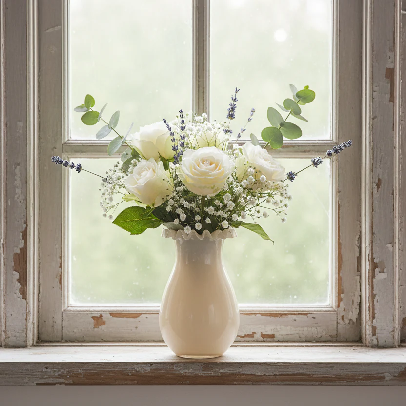 Den beige färgen och den tidlösa designen gör vasen lätt att kombinera med olika inredningsstilar, och den är perfekt för färska blommor, torkade strån eller som en vacker dekorativ detalj utan innehåll.