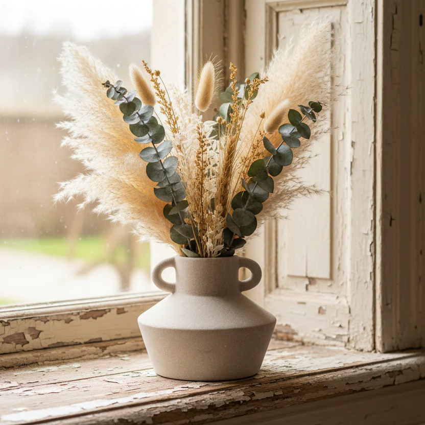 Den perfekta storleken gör speciellt anpassad för enstaka strån, torkade blommor eller små buketter, och den stilrena formen passar lika bra i fönstret, på soffbordet eller nattduksbordet. Sandlycka är ett perfekt exempel på hur enkla detaljer kan skapa värme och karaktär i hemmet.