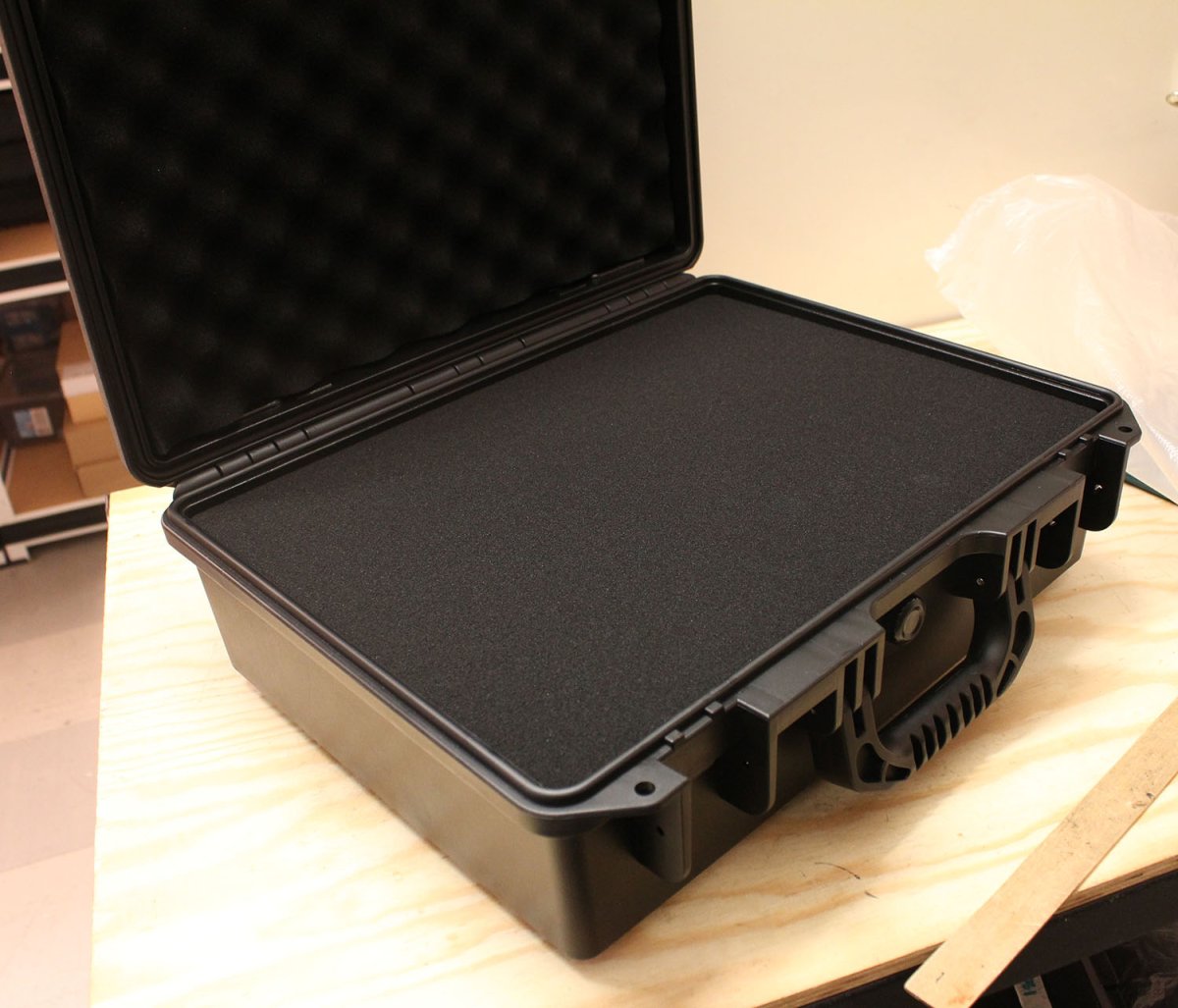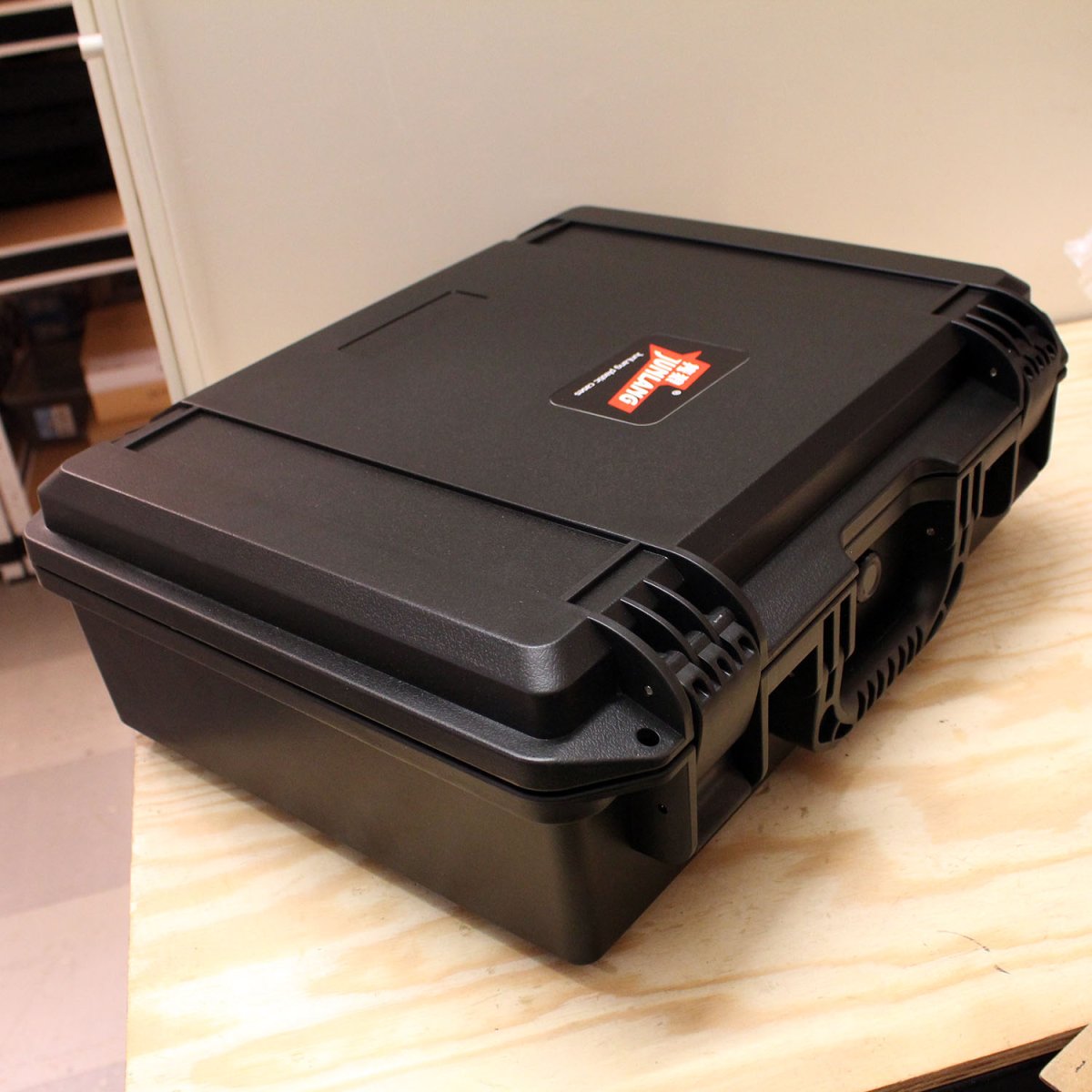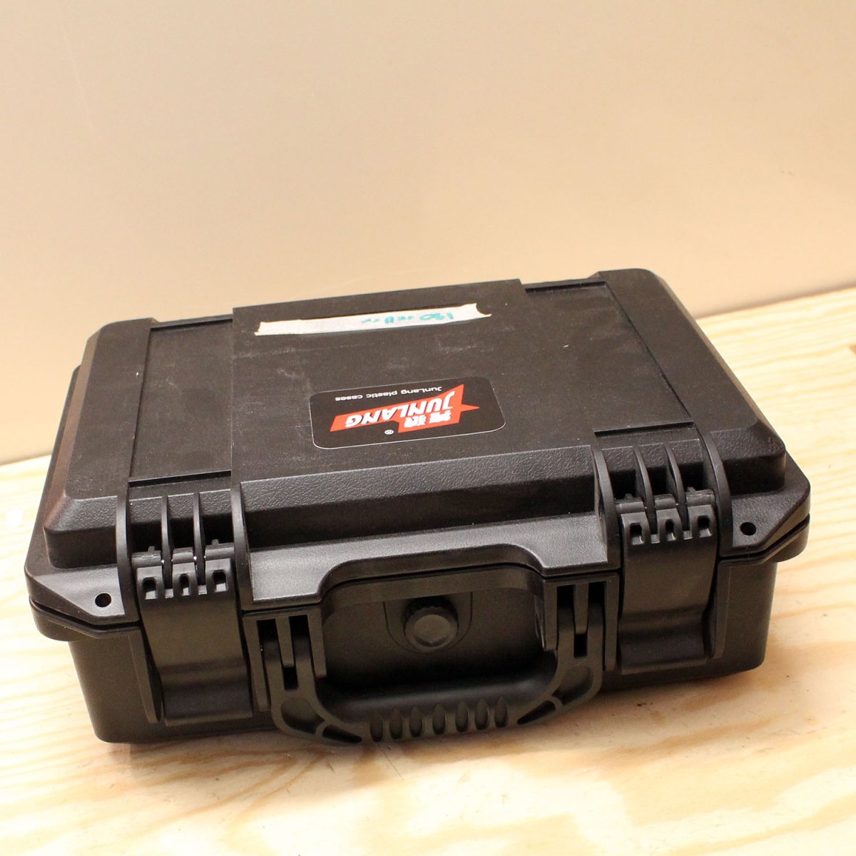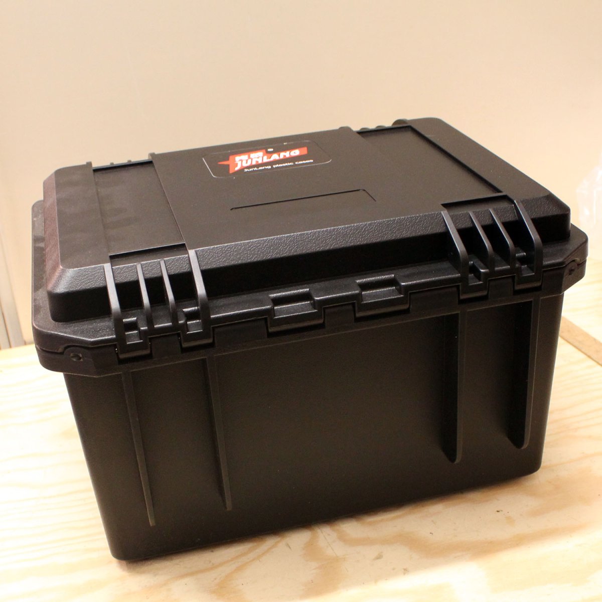 Vädertålig väska, perfekt för batterier. Invändigt skum som kan anpassas för innehållet. ABS-plast som går utmärkt att göra hål i för sladdar och kontakter.