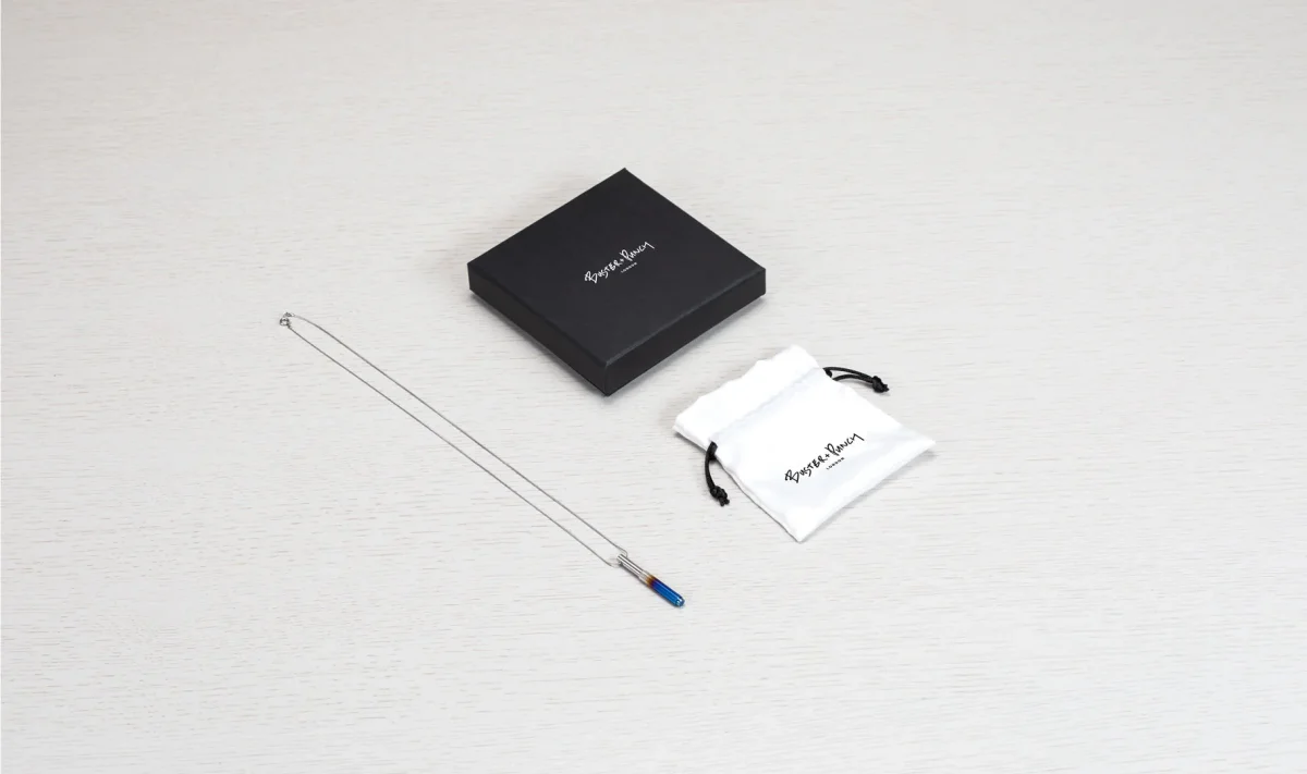 Med Buster + Punchs Vertical-halsband får du ett coolt halsband med ett cylinderformat hänge med Buster + Punchs karakteristiska linjära mönster. Kedjan är 60 cm lång